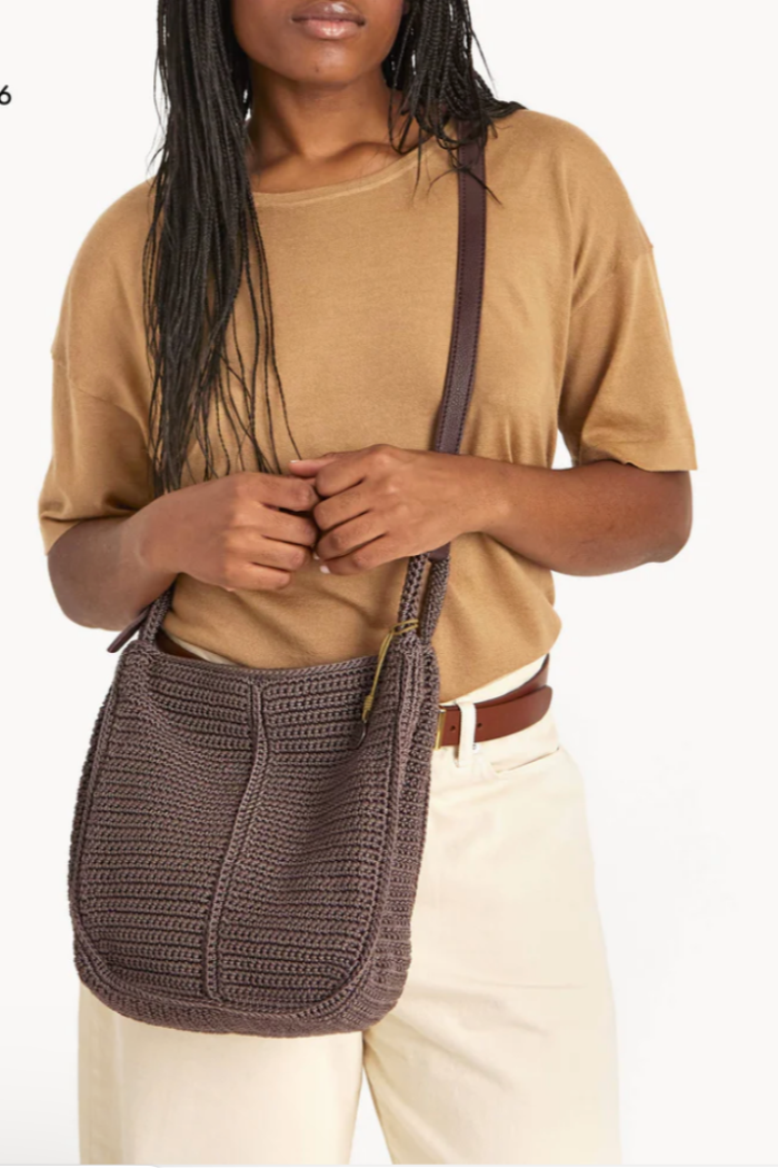 With its adjustable leather strap, the Los Feliz Crochet Crossbody frees up your hands for coffee, keys or cellphone. Hand-crocheted with ocean-bound recycled plastics, this soft, slouchy style has more than enough room for your daily essentials. Packed with plenty of pockets for easy organizing, this responsibly-sourced style is perfect for all-day weekend outings.