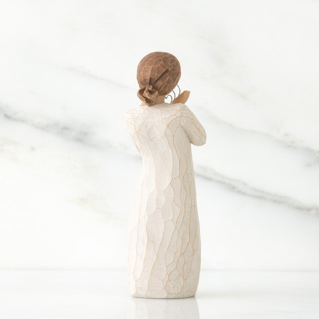 A wedding, anniversary or Valentine’s Day gift that expresses love and caring. Willow Tree is a reminder of someone we want to keep close, or a memory we want to touch. Hand-carved figures reveal their expression through body gestures only… a tilt of the head, placement of the hands, a turn of the body. Each piece is designed to be open to interpretation from the viewer. “Willow Tree isn’t so much about the tangible piece. It represents an emotion, or it marks a memory.” –Susan Lordi. A gift of Willow Tree® communicates beyond words.