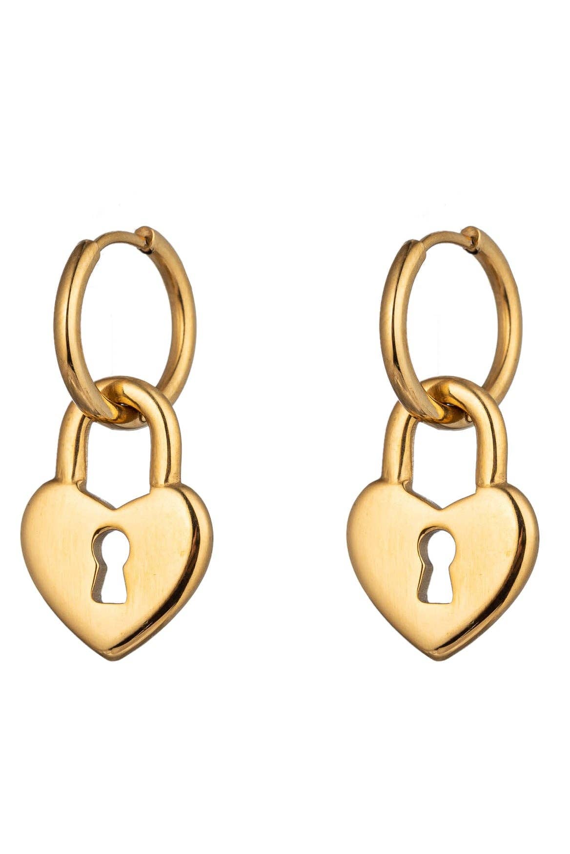 Unlock the everyday with our Louise Golden Lock Huggie Earring! Crafted with a romantic heart, an old-fashioned key, and a shiny gold lock, these huggies add a stylish and unique touch to your look. Who said everyday needed to be boring?