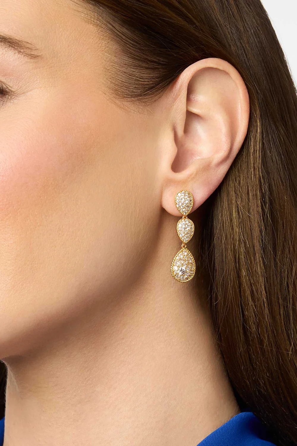 Trios of sparkling pavé teardrops that swing with every movement.
