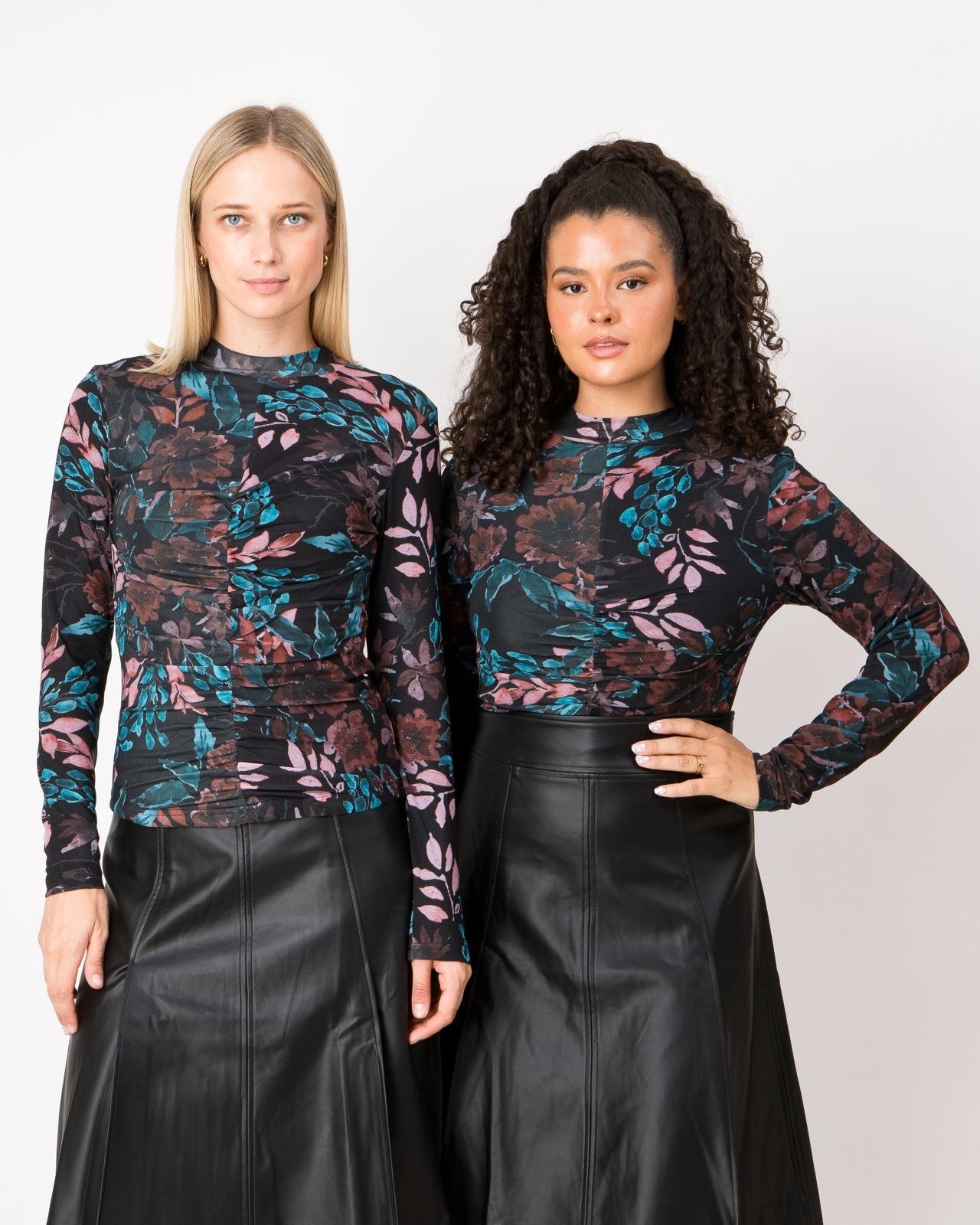 Experience the epitome of elegance with this top. Featuring delicate ruching and a timeless floral print, this top exudes sophistication and luxury. Add a touch of refinement to your wardrobe with this must-have piece.