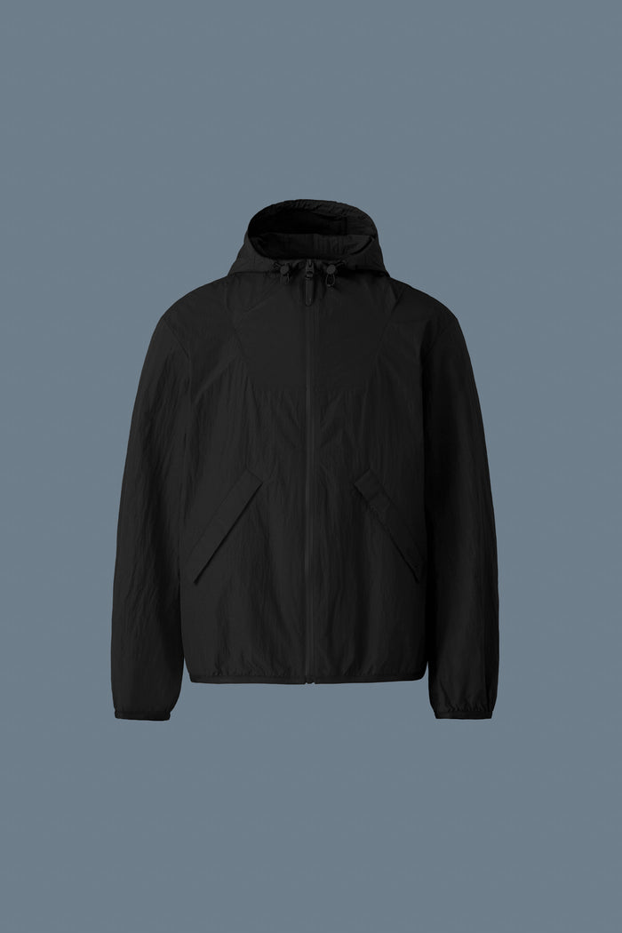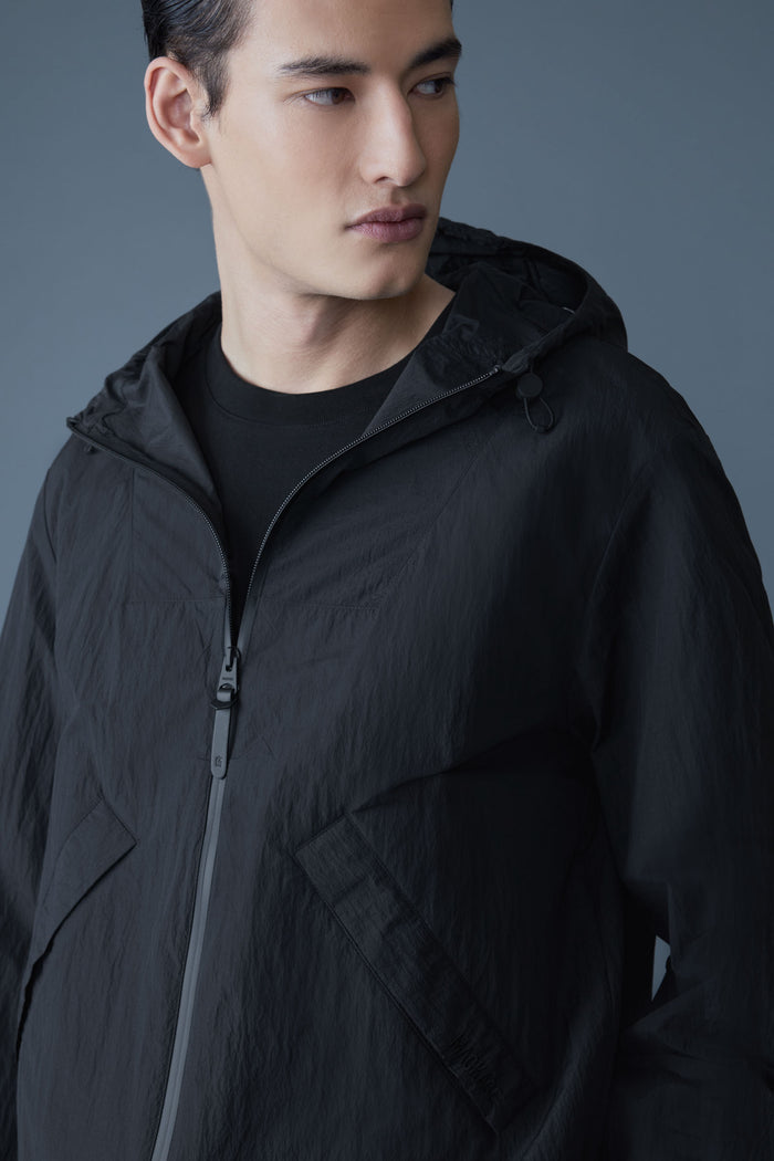 Keep yourself dry and stylish with the Mackage Reid Packable Rain Jacket. Made with recycled materials, this lightweight jacket is perfect for everyday wear. Features include a water-resistant zipper, adjustable hood, and convenient pockets. Plus, the anorak hood adds extra protection on windy days. Easily pack and carry with the included pouch.