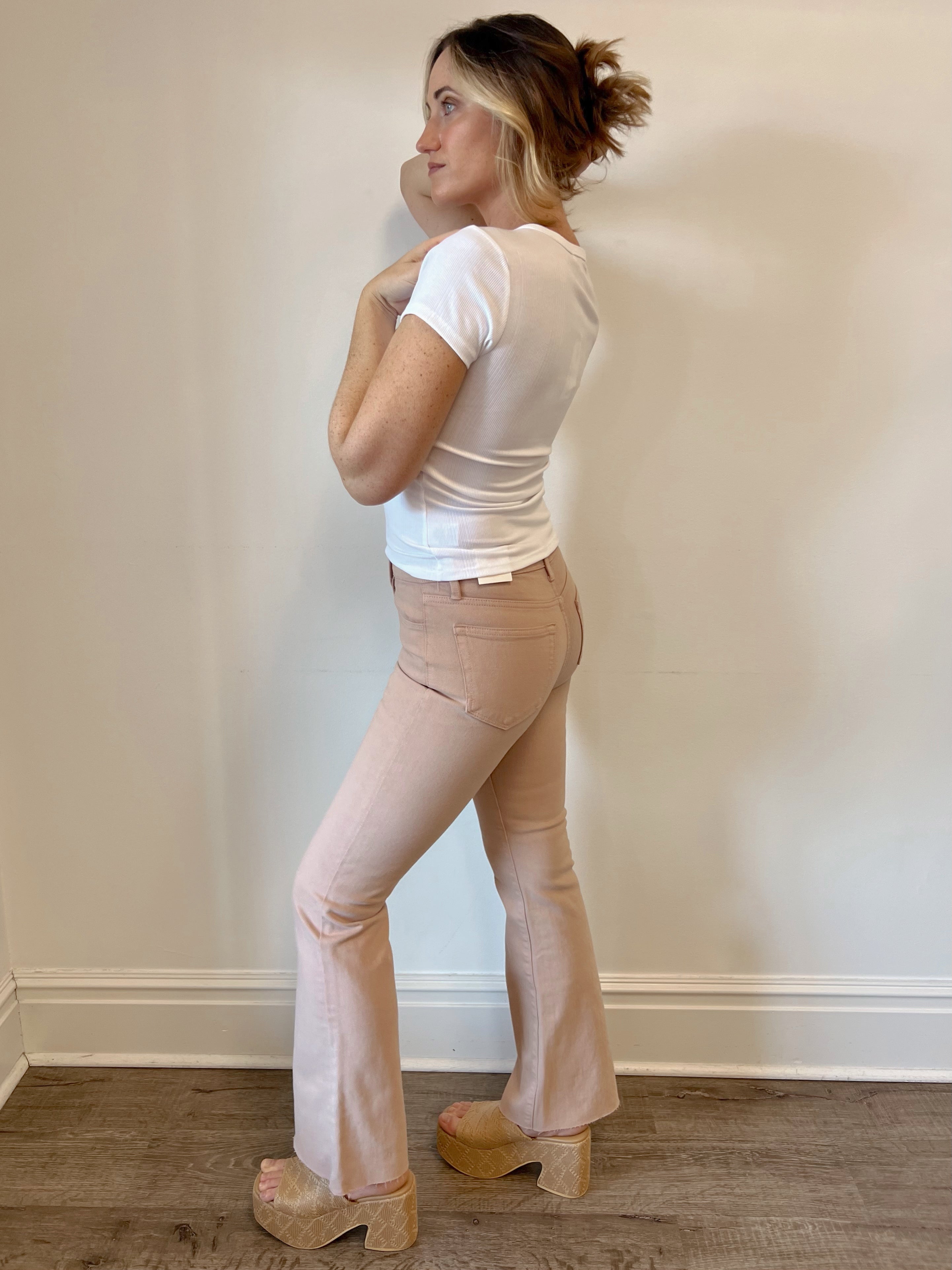 Get ready to show off those ankles with our Madison Flare Jeans! These ankle-length jeans feature a trendy flare cut hem and convenient front and back pockets. Perfect for effortlessly stylish looks.