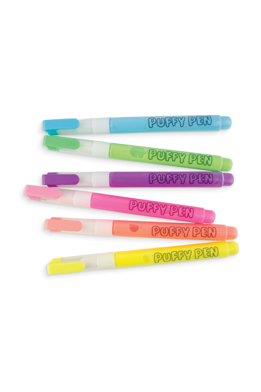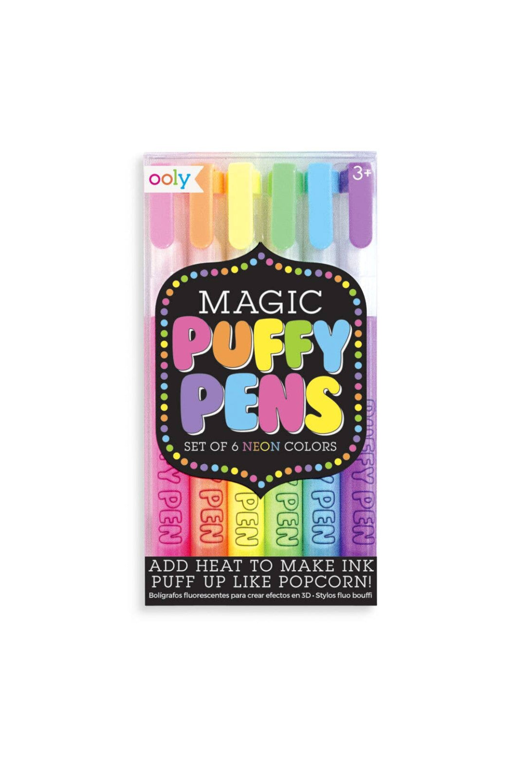 Magic Puffy Pens are a very special set of neon colored pens that puff up with 3D magic when you apply heat. It's all in the magic ink.