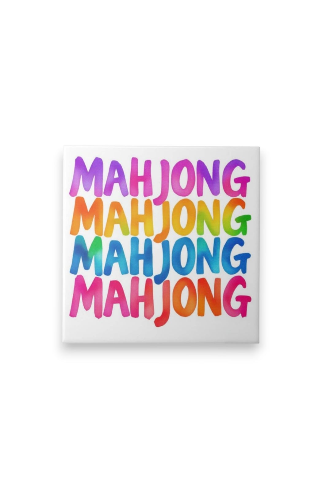 Bright, playful glass coasters printed with stacked, rainbow “MAHJONG” lettering make a vibrant accent for tabletops. The Mahjong Glass Coaster Set is crafted from glossy glass with a smooth, squared silhouette that protects surfaces from moisture and heat. Sized for everyday drinkware, these coasters bring a cheerful, modern touch to casual entertaining. This piece is offered by Kristin Smith and works equally well as a gift or a colorful addition to your bar cart.