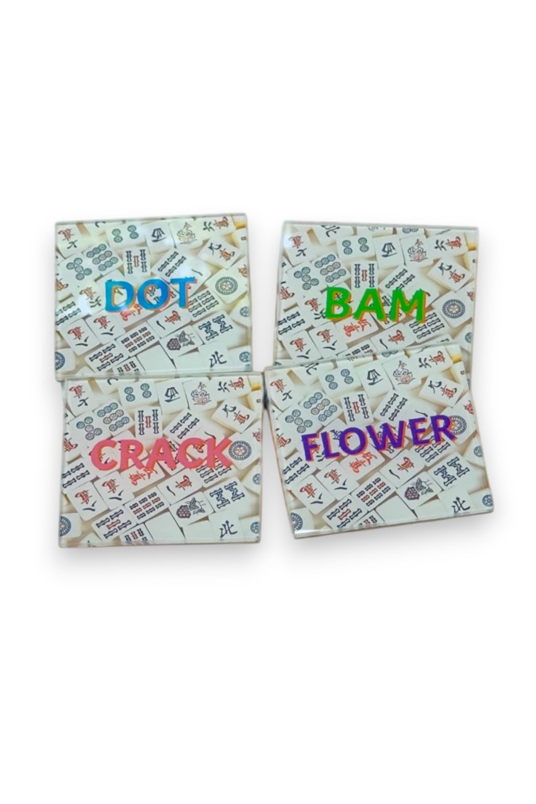 Majong Crack/Dot/Flower/Bam Glass Coaster Set