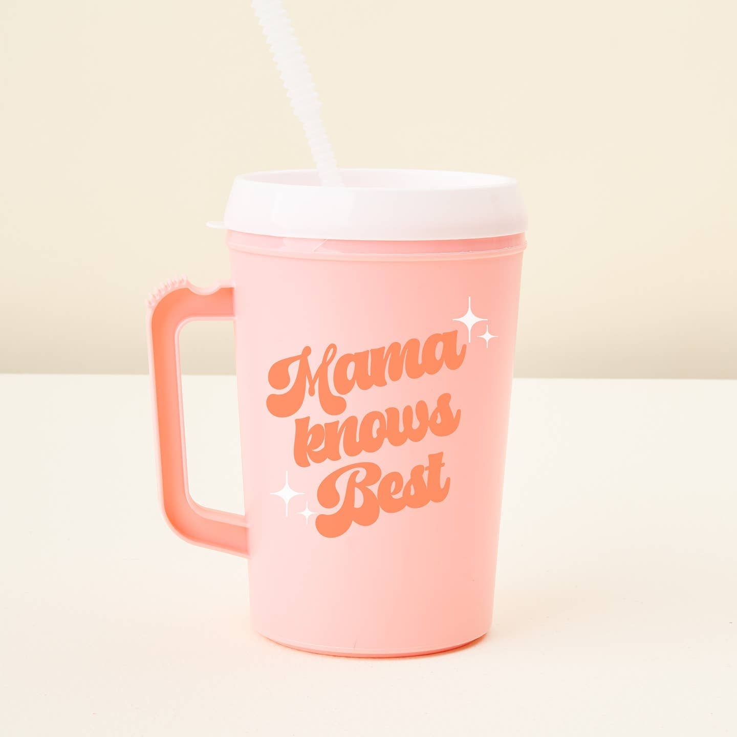 Add some extra flair to your upcoming events and celebrations with our Mama Knows Best Mega Mug (34 oz.). This mega mug will keep you hydrated all day long, thanks to its large 34 oz capacity and included plastic straw and lid. The convenient straw topper and easy to carry handle make it a must-have for any occasion. For best care, simply hand-wash this mega mug. Go ahead, make a statement with your hydration game!
