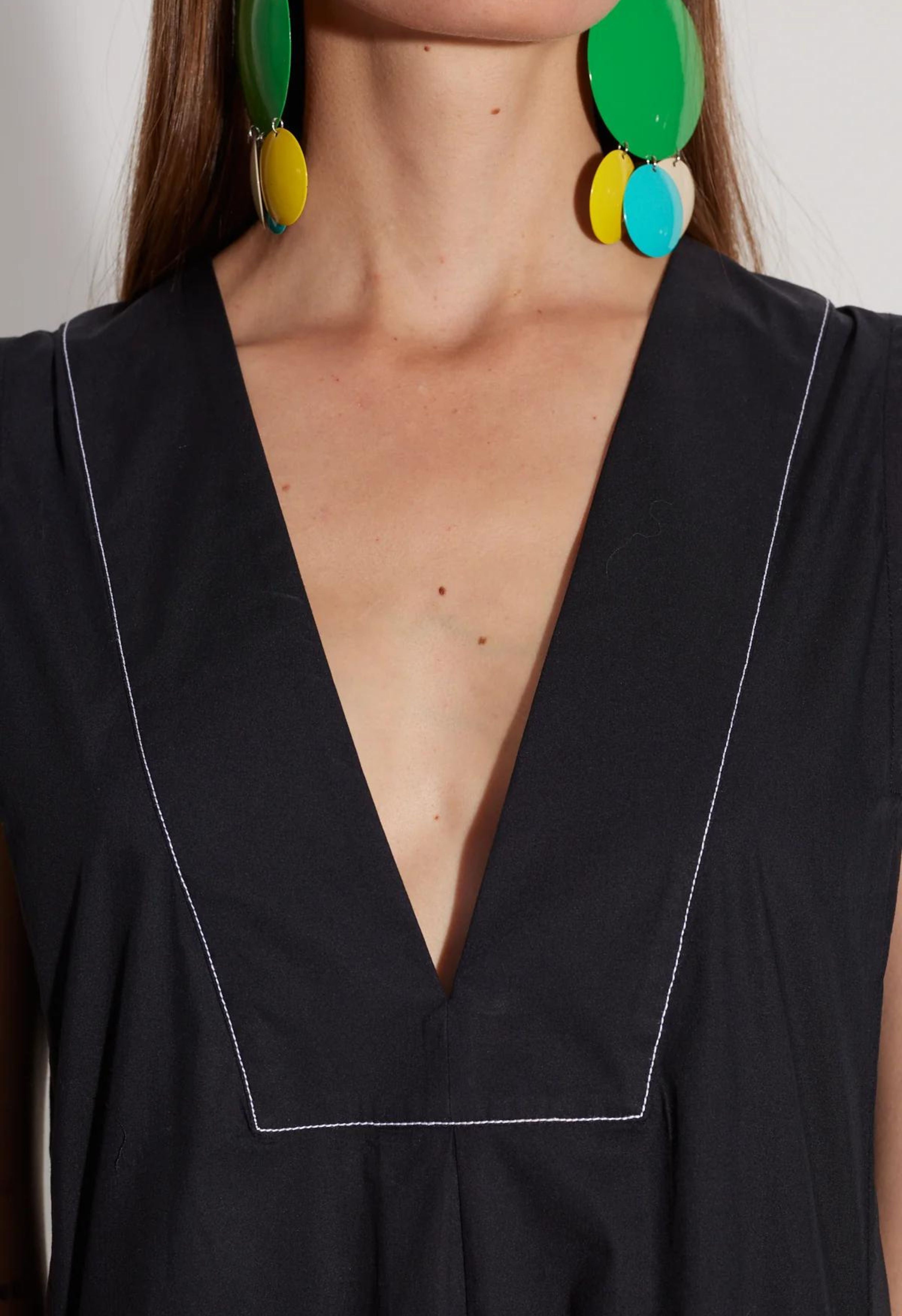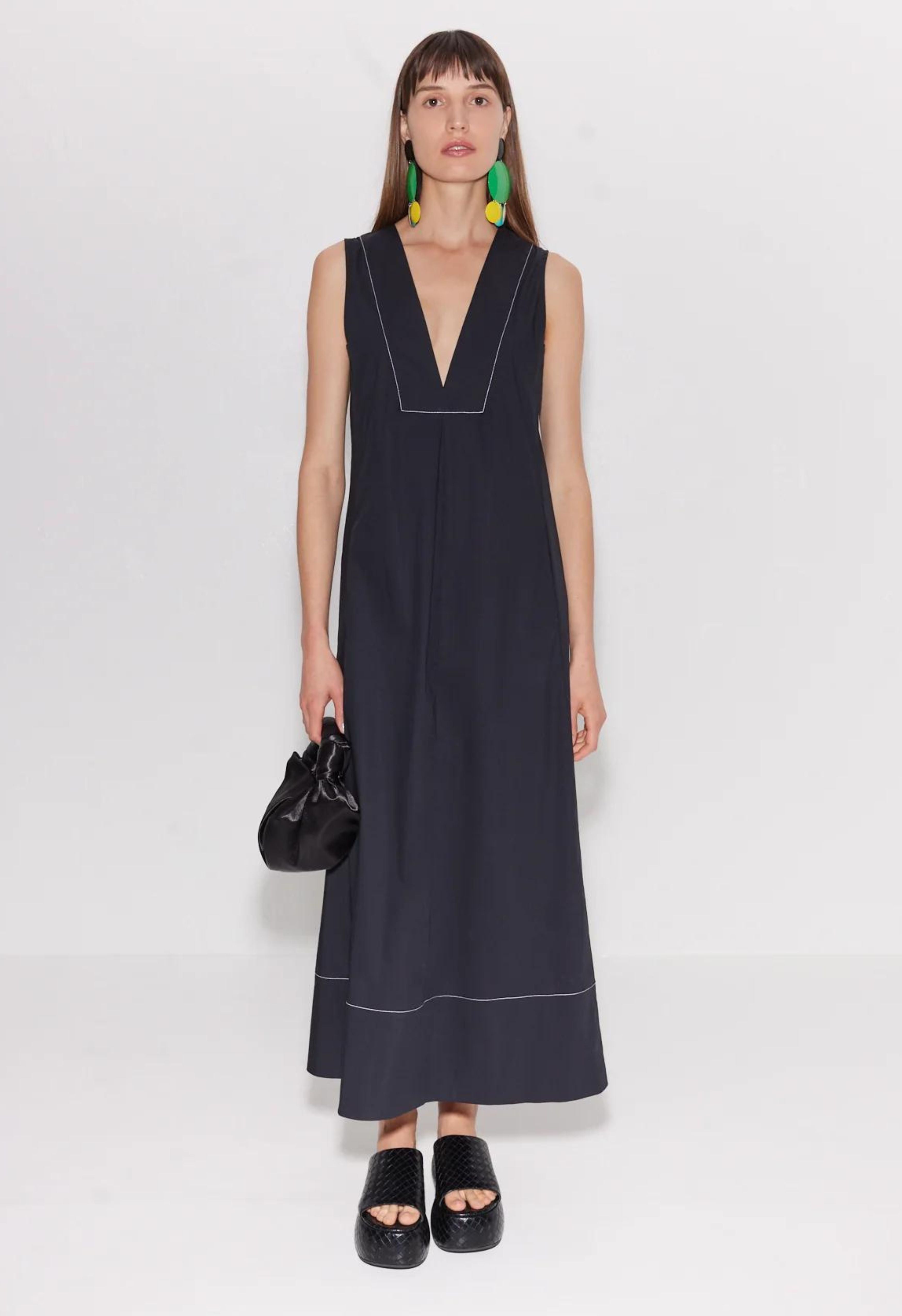 Sleeveless Poplin Dress with V Neck Cut