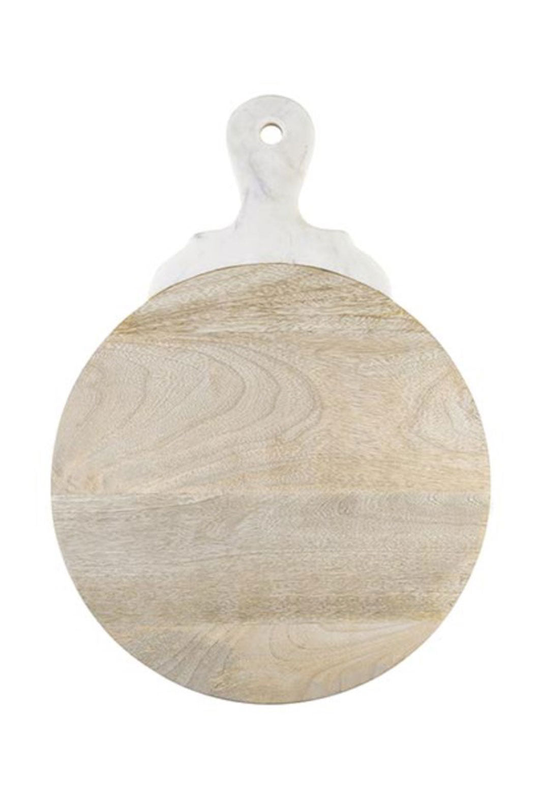 This gorgeous unique board is mixed with white marble and natural wood. Use this board to display tasty cheeses and charcuterie.