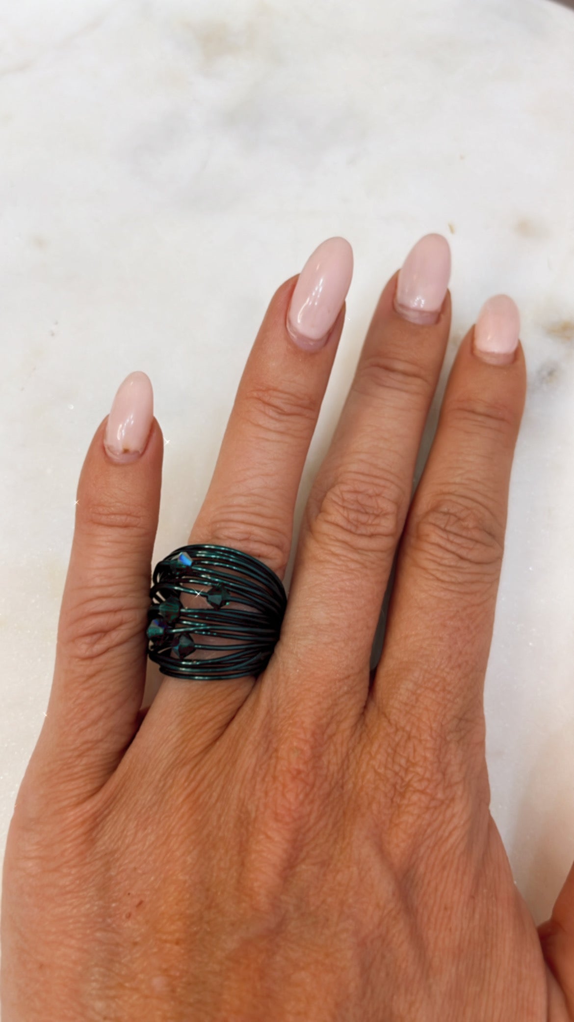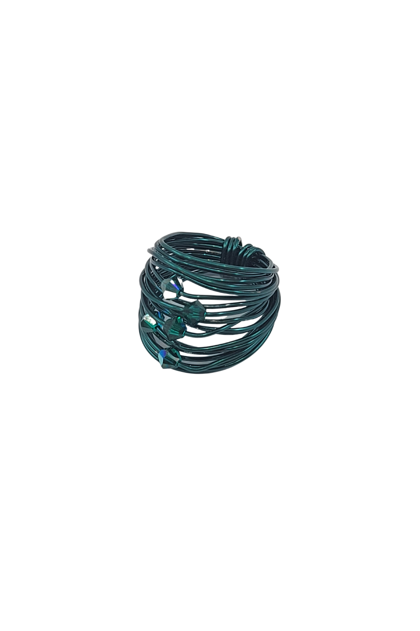 Marcia Green Wire Wrap Ring with Forest Green Swarovski Crystals