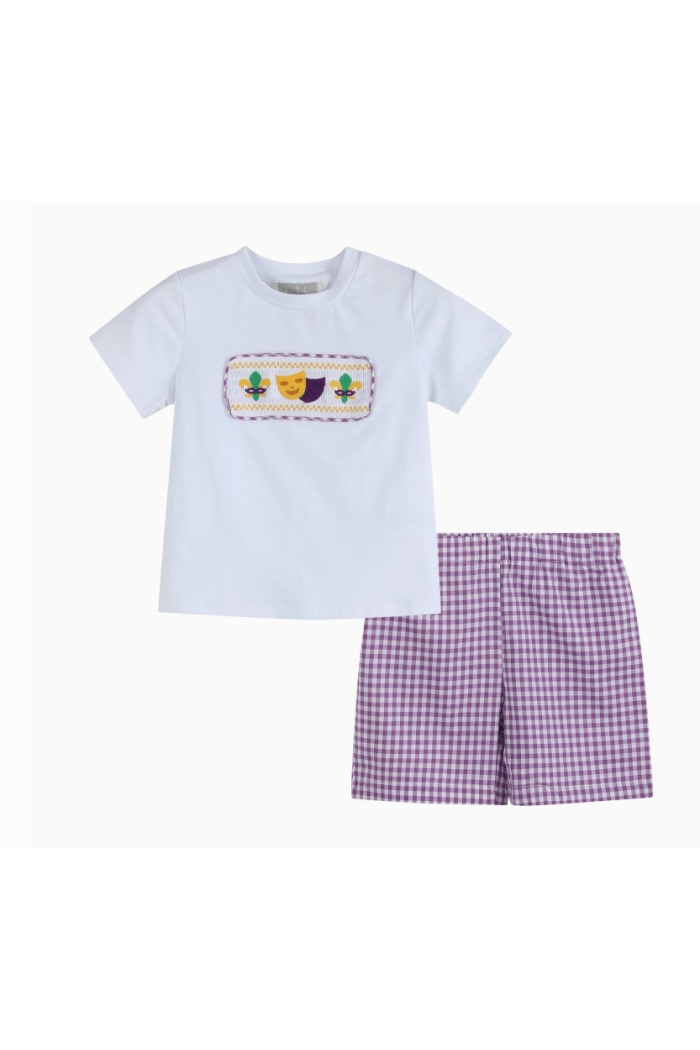 MARDI GRAS SMOCKED TEE/GINGHAM SHORTS