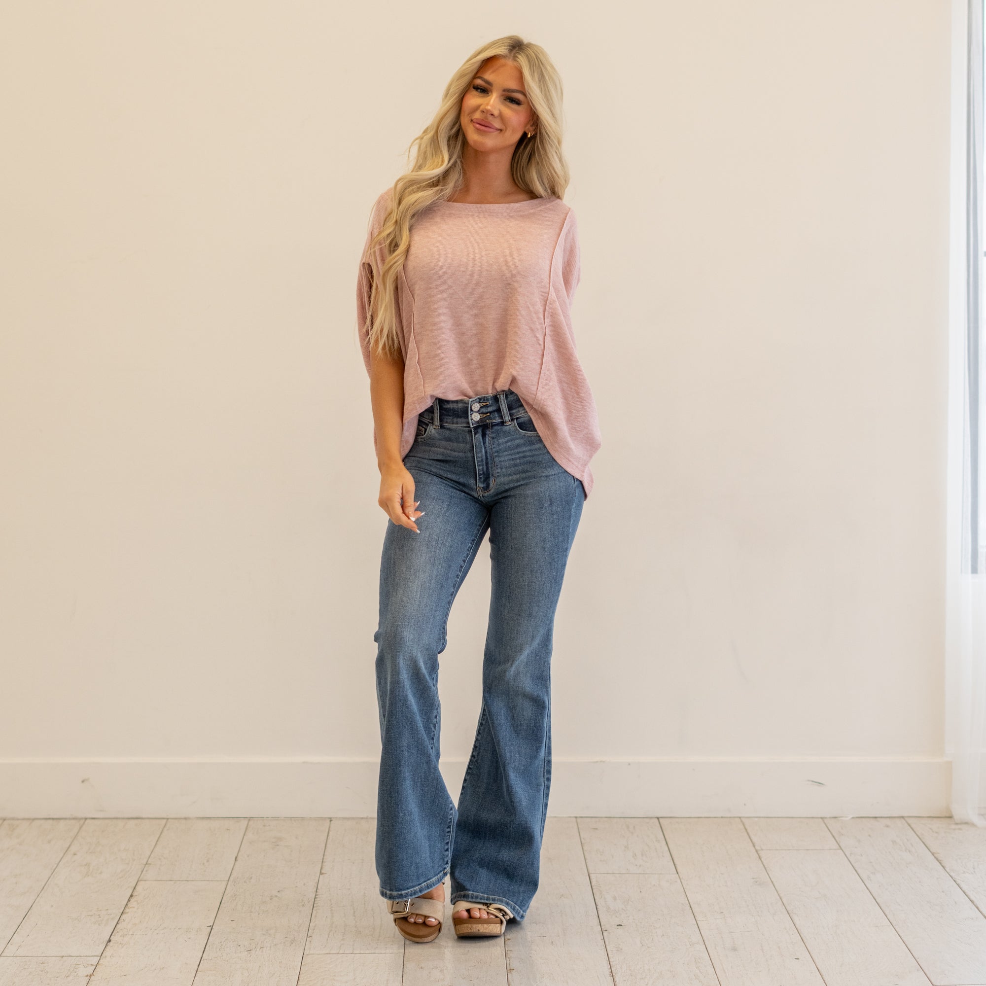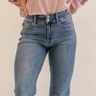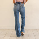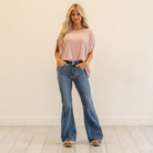 Get ready to turn heads with our MAREN FLARE JEANS. These medium wash jeans feature a flattering high rise and stretchy material for maximum comfort. The double button and zipper fly add a unique touch while the back flap pockets provide functionality and style. A must-have for any fashion-forward wardrobe.