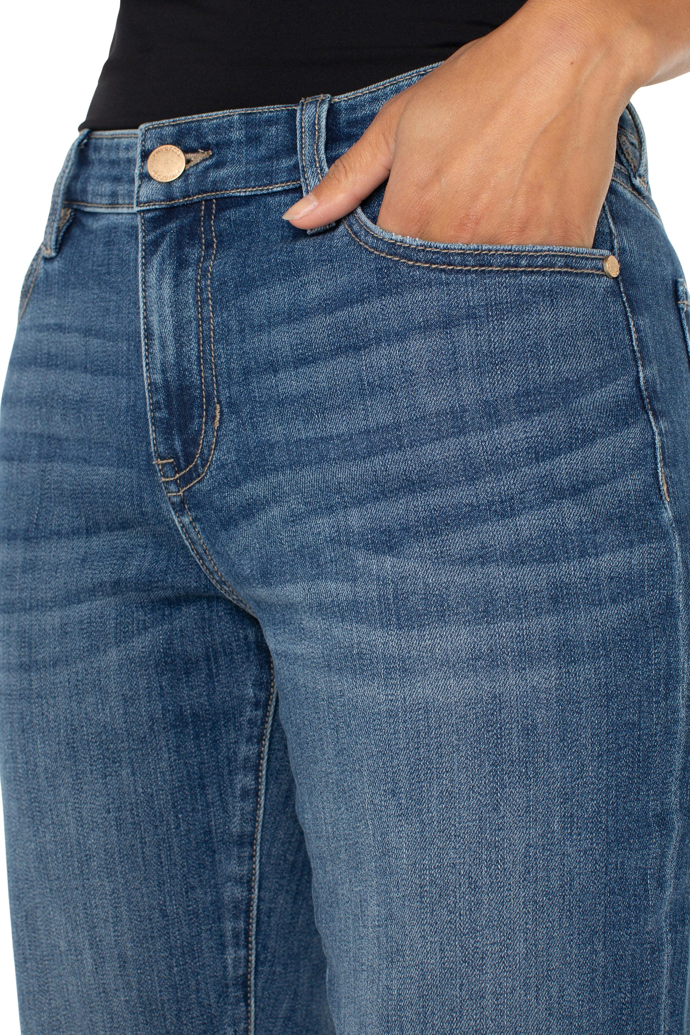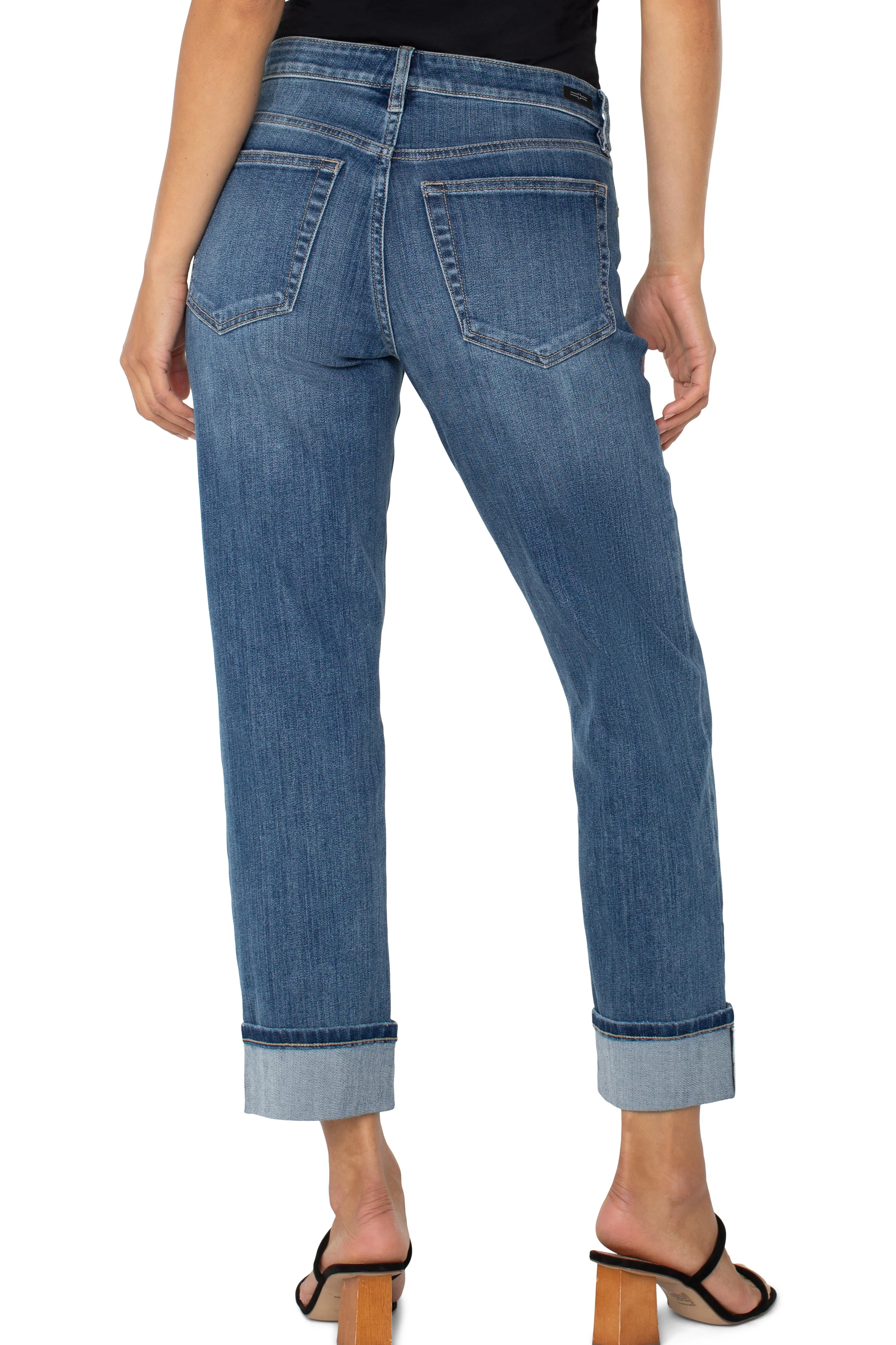 The Marley Girlfriend provides ample space from mid-thigh to its cuffed hem, resulting in a flawless silhouette. Its exceptional stretch and use of innovative laser techniques and minimal resources make it a modern eco-friendly denim choice, embodying the distinct "Liverpool Look."
