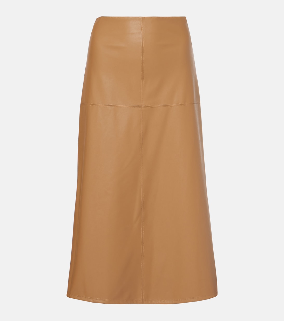Max Mara Scilli Coated Jersey Midi Skirt in Tobacco