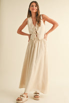 Breeze through the season in this flowy linen maxi skirt. Featuring a comfortable elastic waistband and a relaxed silhouette, this piece is perfect for casual days or dressed-up occasions. The lightweight, breathable fabric ensures all-day comfort, making it a versatile staple in any wardrobe. Pair it with the matching vest or a simple top for an effortlessly stylish ensemble.