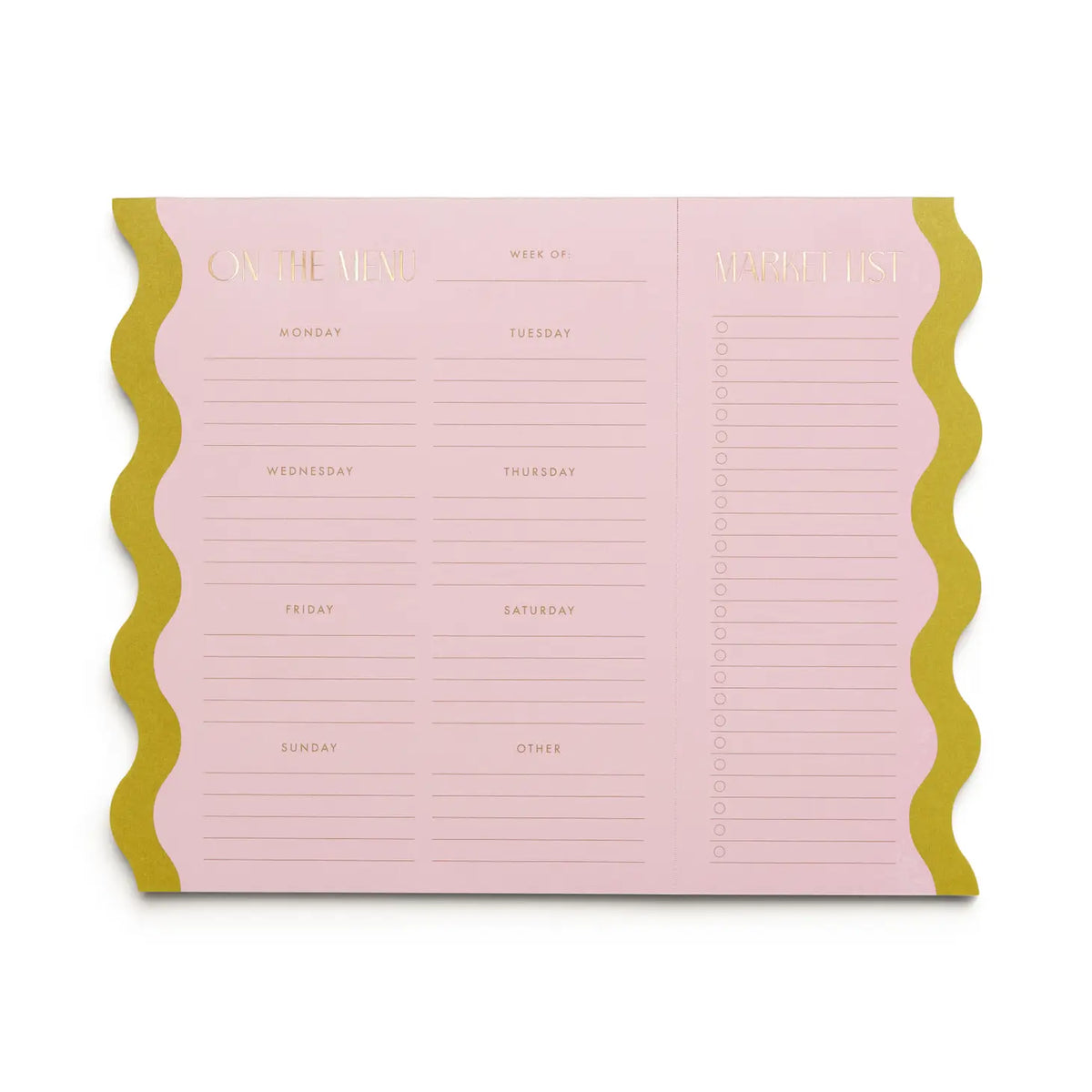 Efficiently plan your meals for the week ahead with our Meal Planner Notepad! With a weekly design and a perforated market list, this 10" x 8" notepad also features double magnets and gold foil accents. Made with eco-friendly materials, it's the perfect addition to your kitchen.