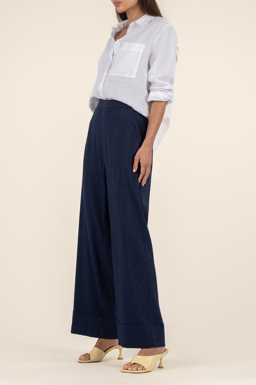 Made from a breezy linen blend material, these high-rise pants feature a relaxed wide leg and comfortable elastic waist for an easy fit. Finished with subtle hem detail, They’re a versatile piece that brings comfort and style to everyday dressing.