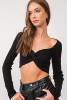 Melanie Front Twist Crop Knit Top -Front Twist -Crop Knit Top