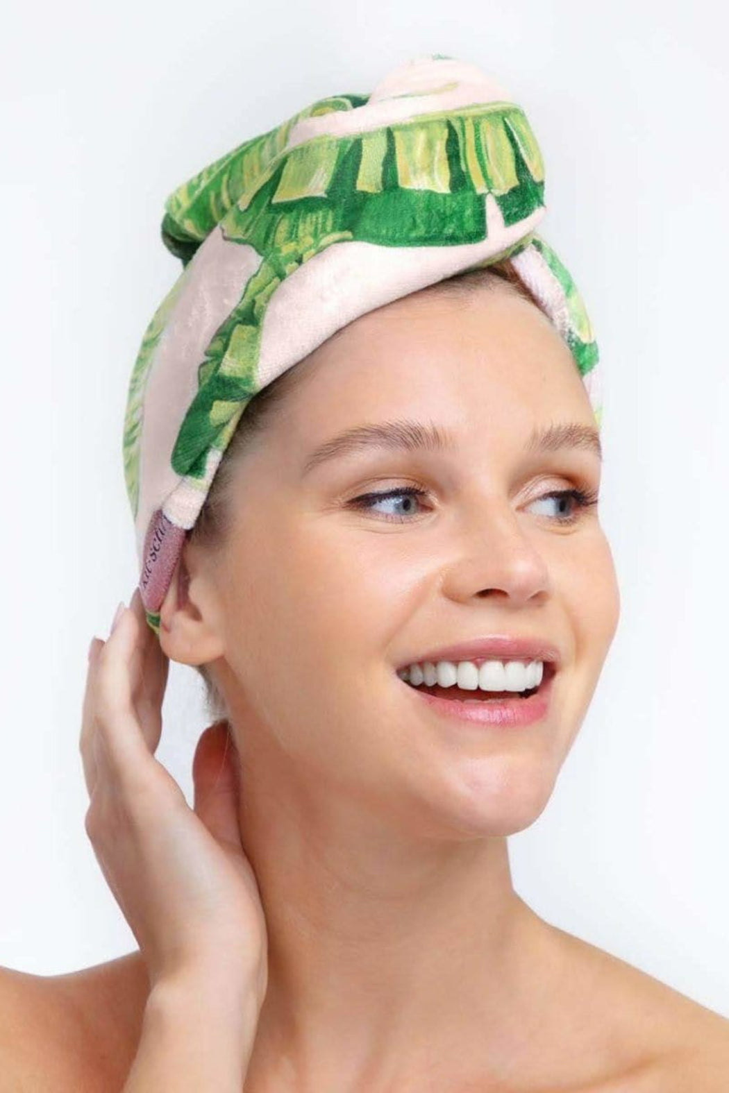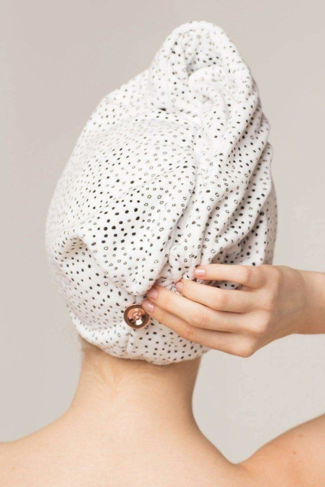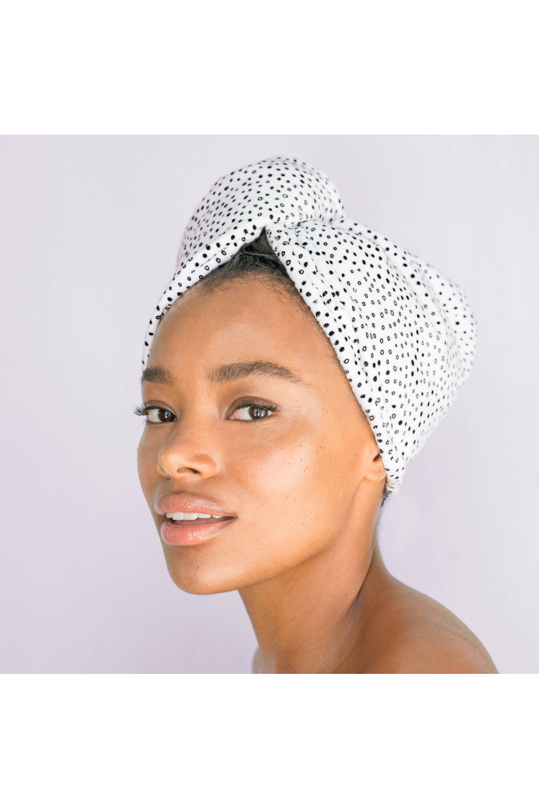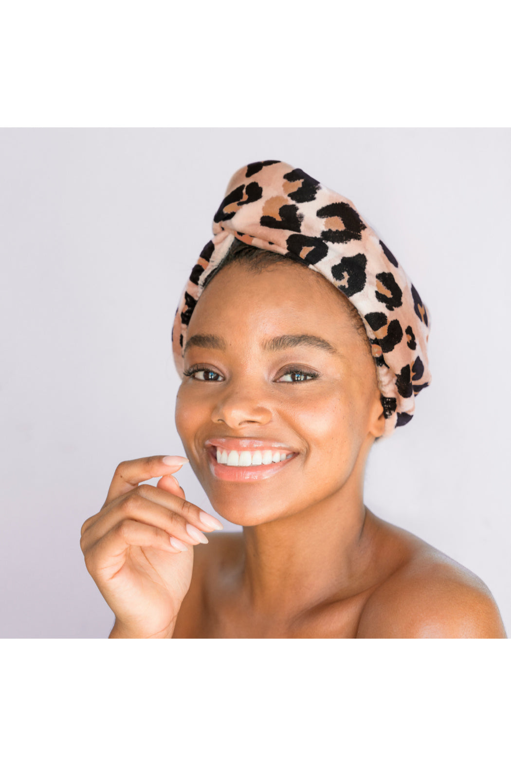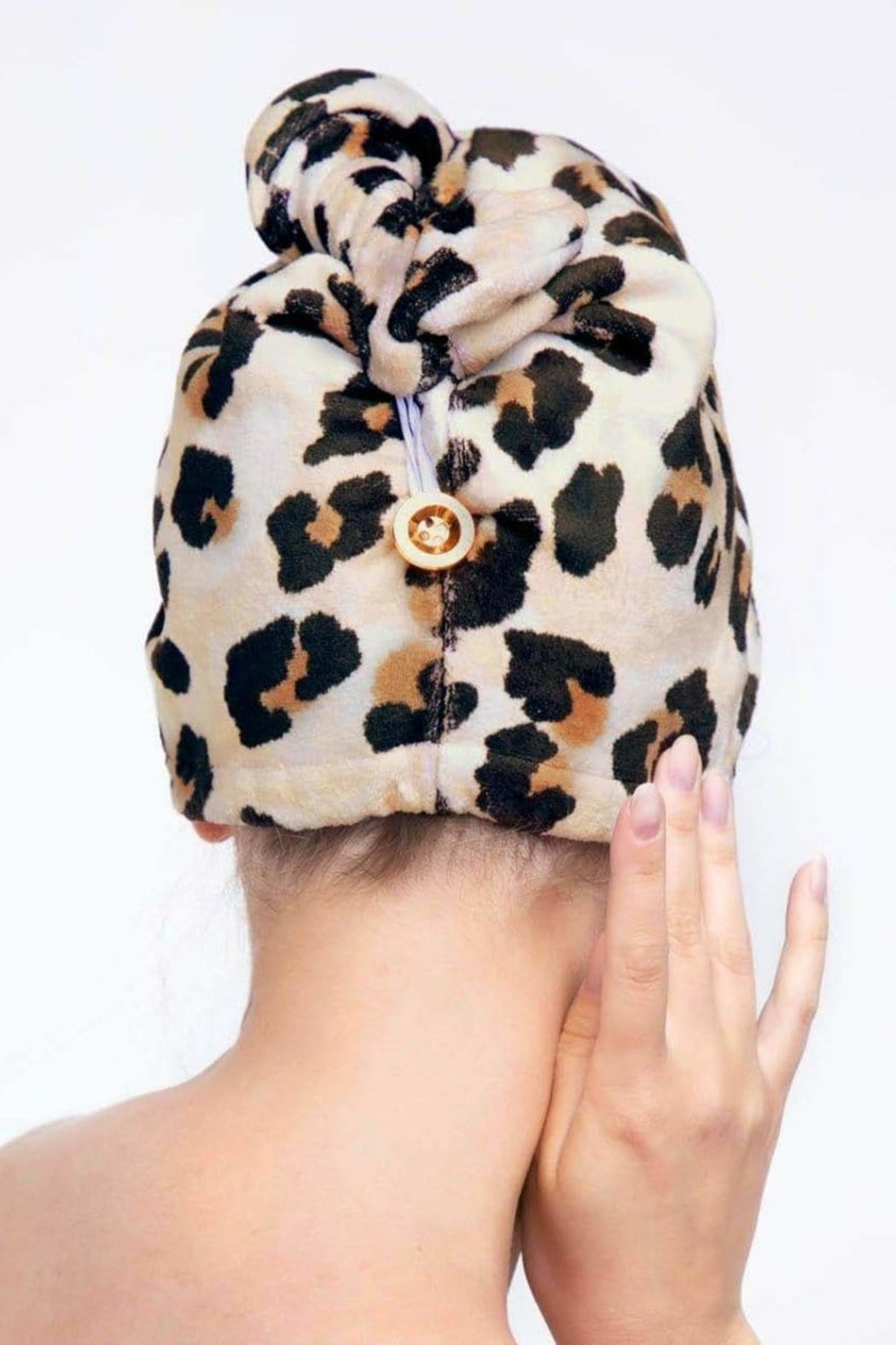 Look chic in and out of the shower with our revolutionary hair towel! These luxuriously soft microfiber hair towels are gentle for your skin and hair. Hair towel accommodates all hair lengths while providing comfort during your post shower routines. Available in white, micro-dot, and leopard. Would make a great gift and self-care item!