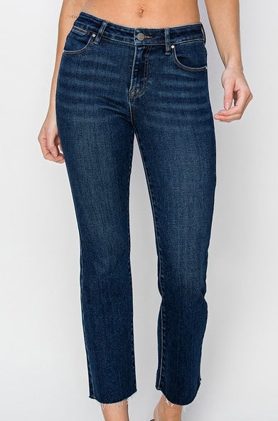Mid Rise Raw Edge Straight Jean