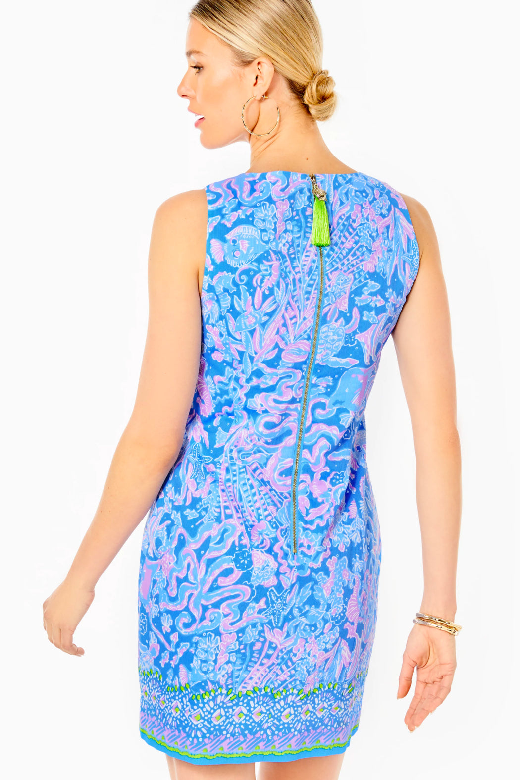 A Lilly staple with a hint of stretch, the Mila Stretch Shift Dress features a straight silhouette with a bra-friendly fit. An exposed back zipper embellished with a novelty pull completes this versatile design.