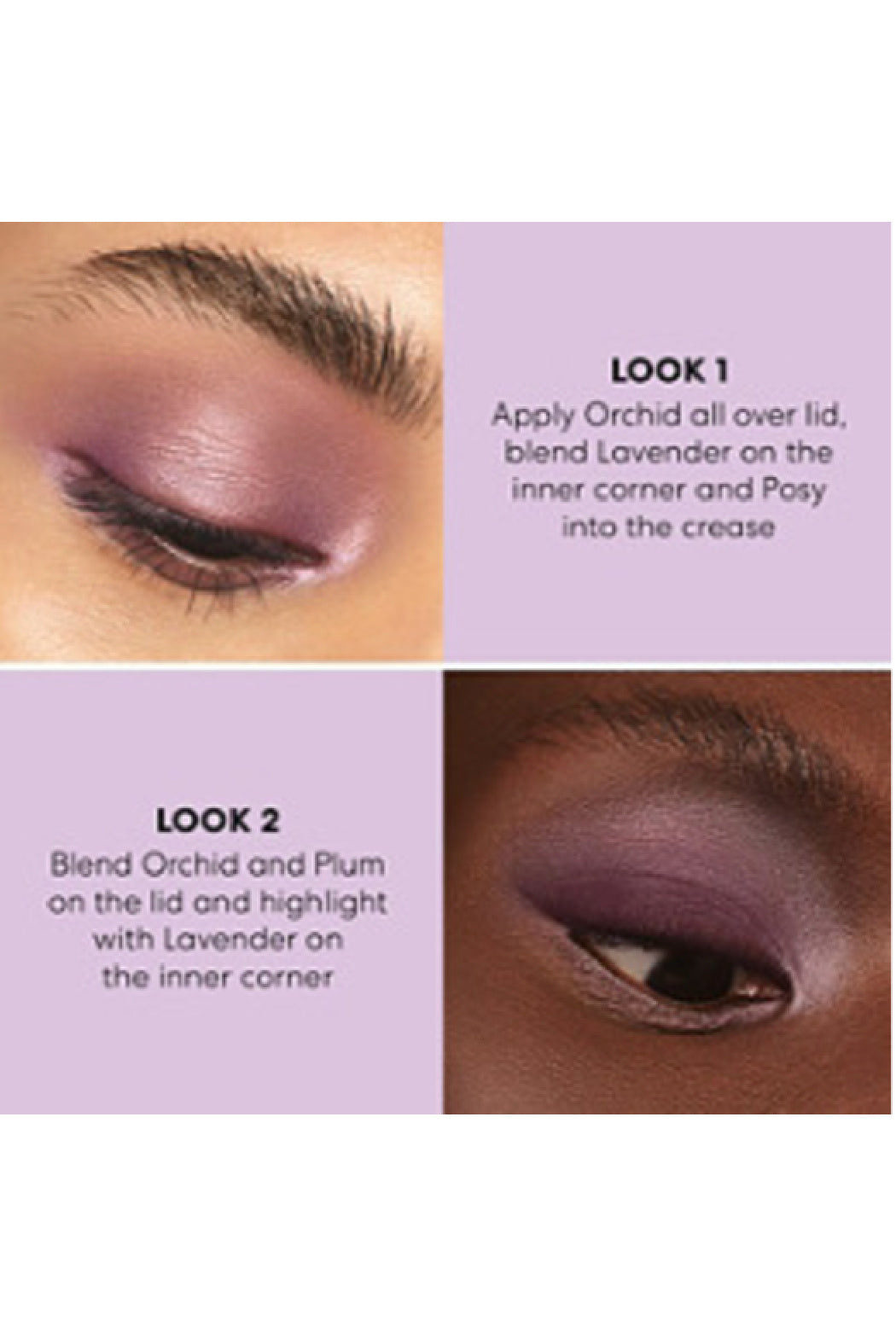 For a more intense wash of color, layer 2 or more shades with different finishes to build a seamless dimensional look.