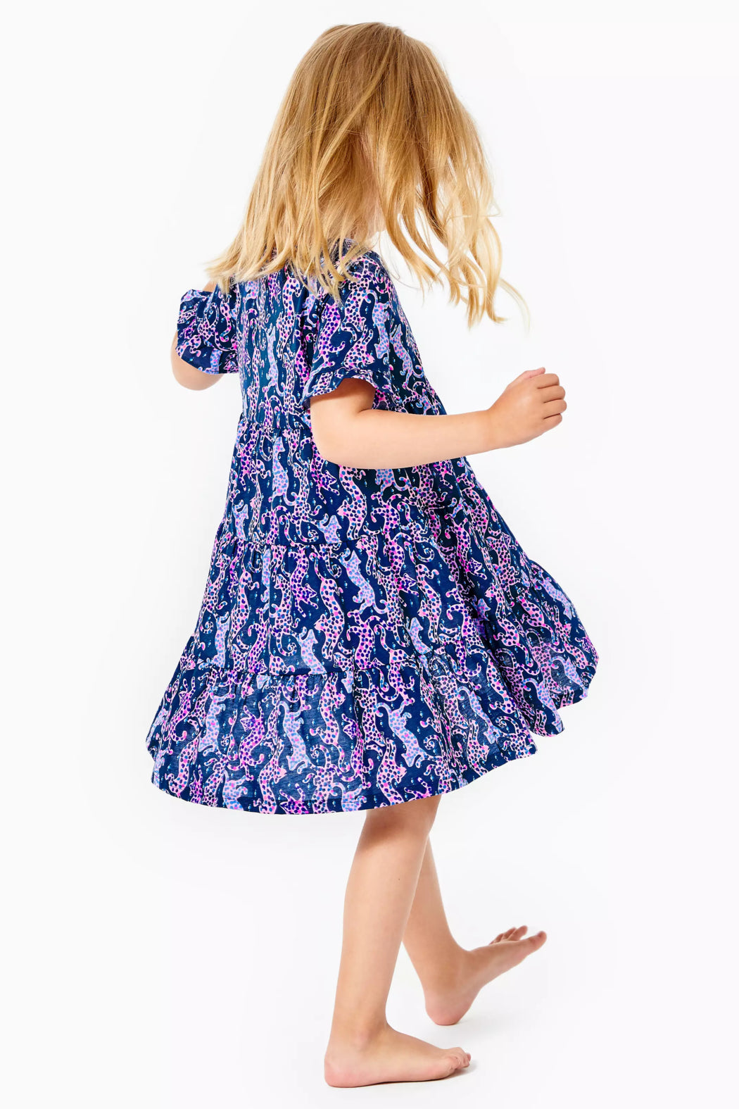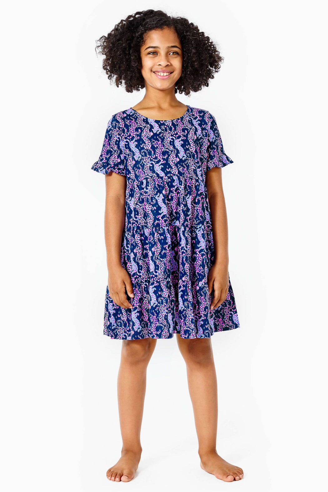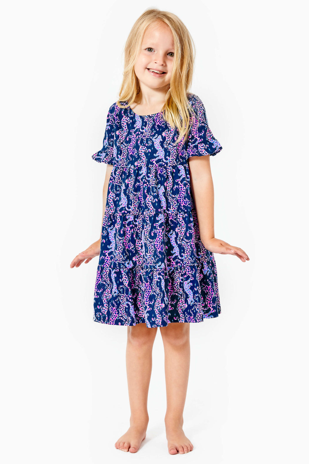 Your mini is sure to be delighted with the newest Girls Mini Jodee Dress. She'll get a kick out of its fun fit, which is swingy thanks to tiers along skirt. Short sleeves with subtle ruffles make the top extra cute, too. Finished off with a vibrant Lilly print, this is one dress that little ones are sure to adore.
