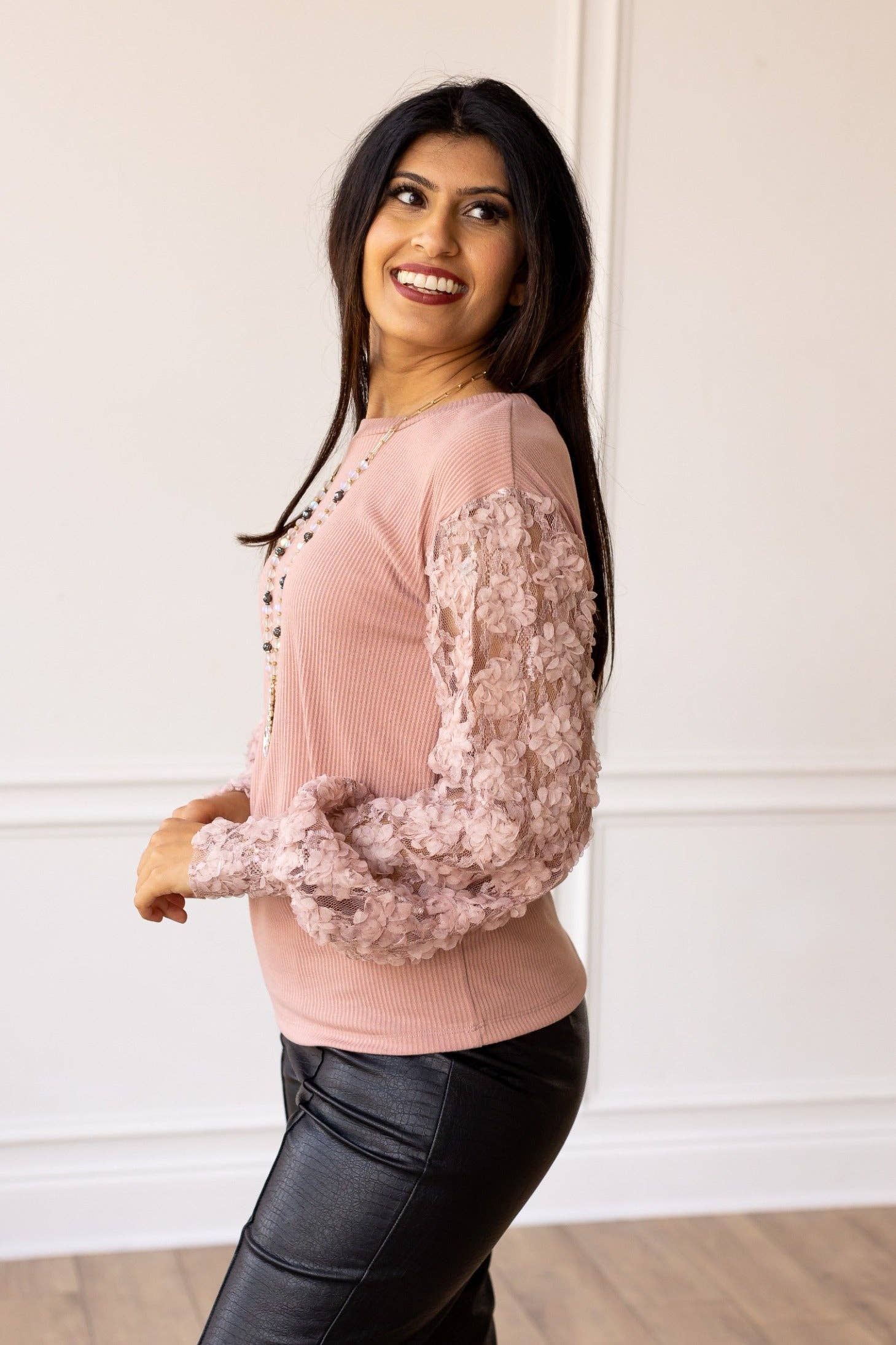 Miss Perfect Mauve Floral Mesh Sleeve: Mauve