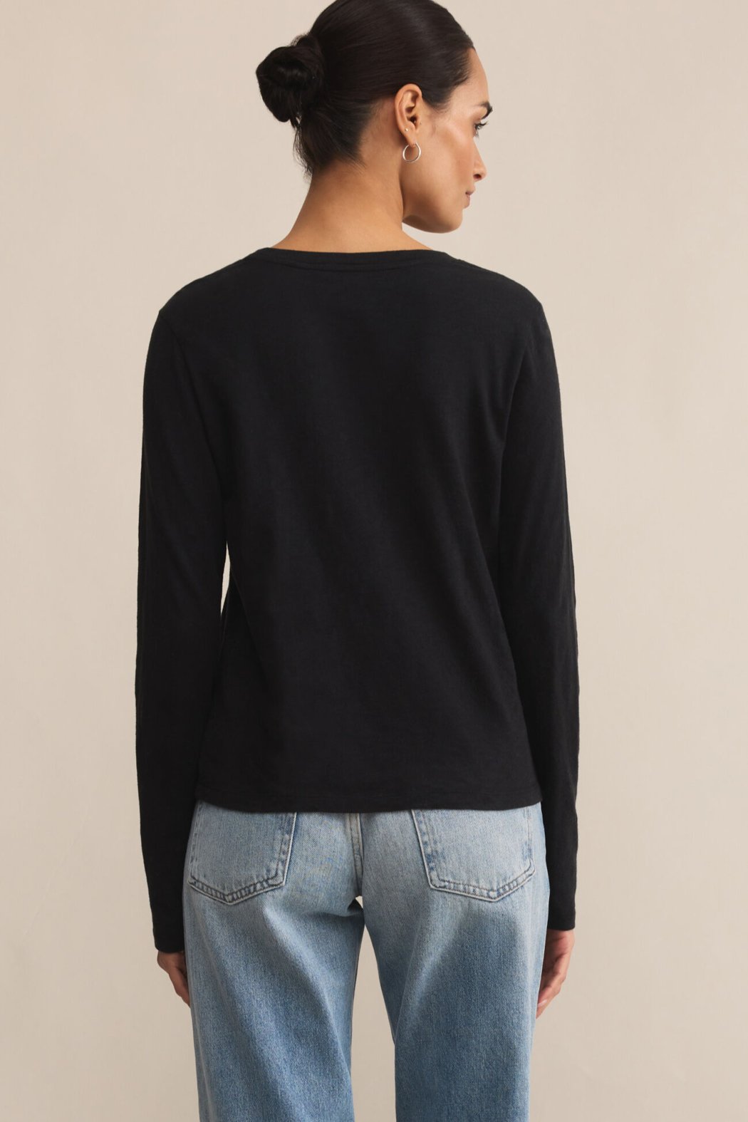 Your new favorite long sleeve tee, this easy-to-style crew neck is made of lightweight cotton slub jersey fabric for all day comfort. With its regular fit, this versatile tee offers endless styling options whether tucked in or out.