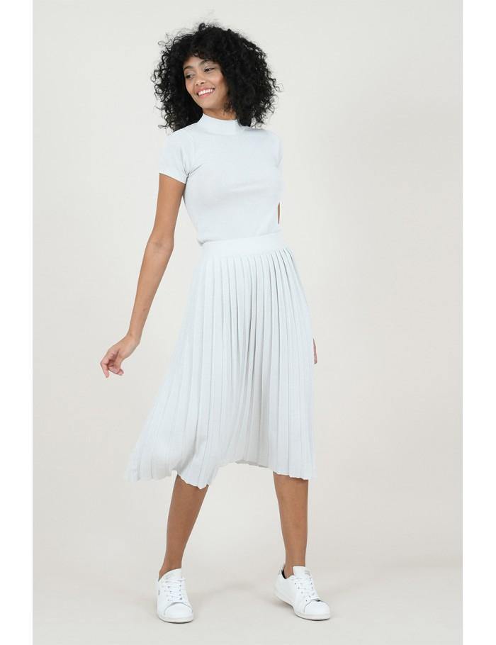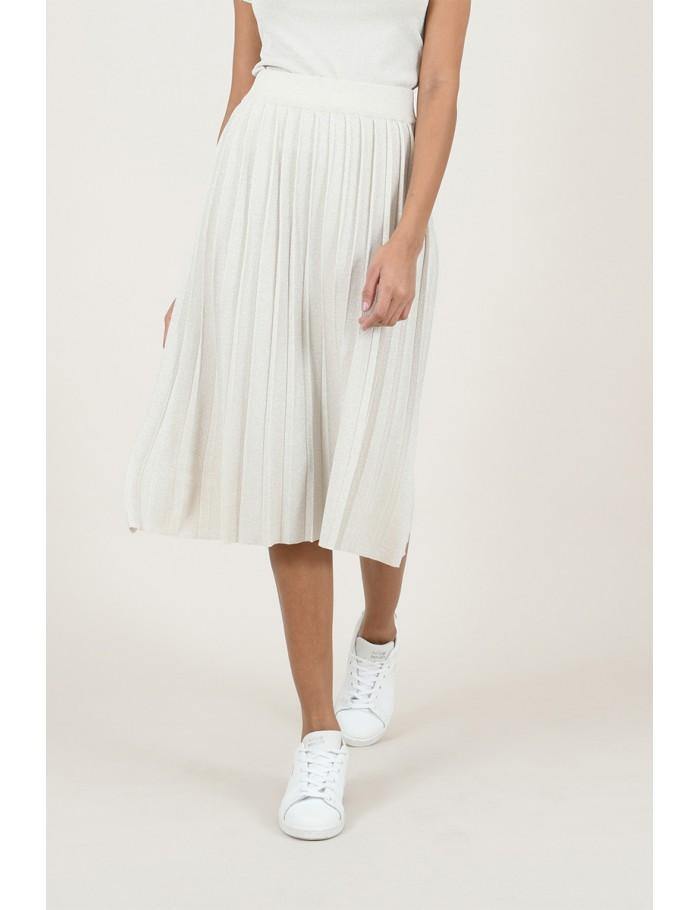 Metallic lurex skirt with pleats and elastic waist band, midi length