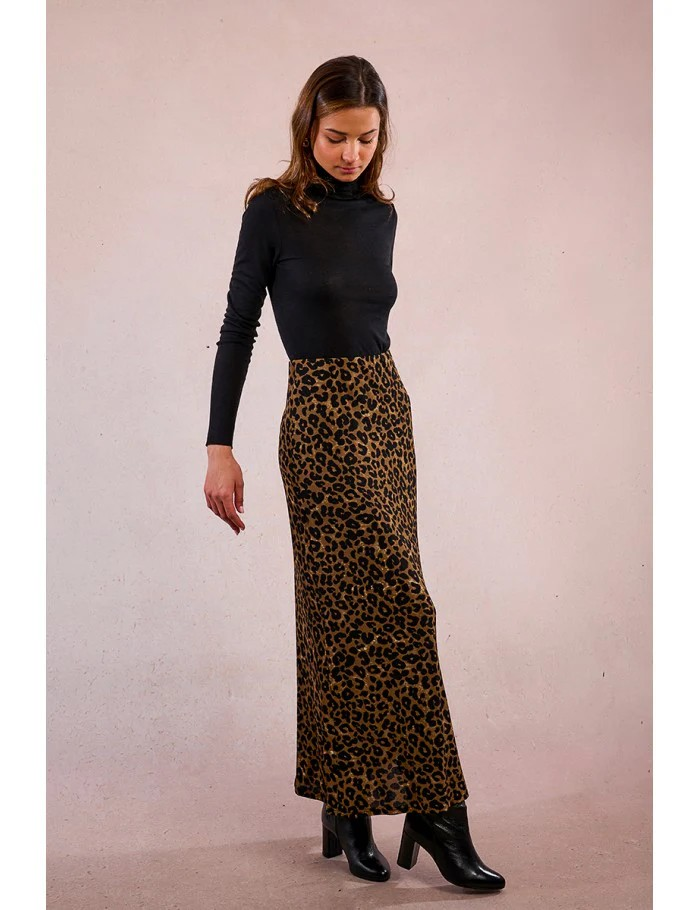 Elevate your wardrobe with this striking leopard print skirt, designed with a flattering high waist for a sleek silhouette. The invisible zip closure ensures a smooth, seamless look, while the straight fit offers elegant flow and movement. At 100cm in length for size S, this skirt combines bold style with refined comfort, perfect for making a confident statement wherever you go.