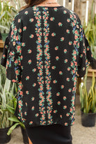 Stay up to date with this season's current trends with the Moment In Time Kimono! What's not to love about this piece!? Featuring a pink and blue floral print on sheer black fabric, an open front, dramatic gathered sleeves, and a flowy silhouette. Pair with denim and a tank or throw it over a dress, either way you're going to look stunning!