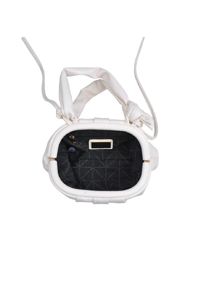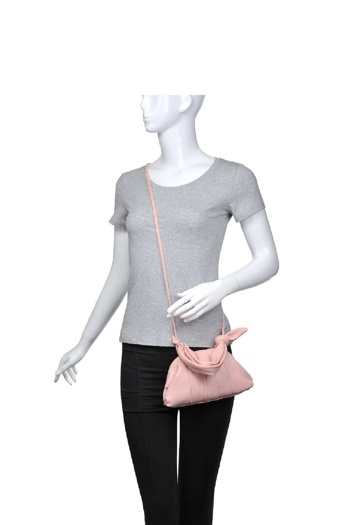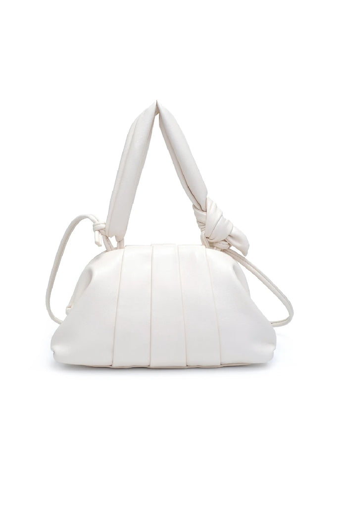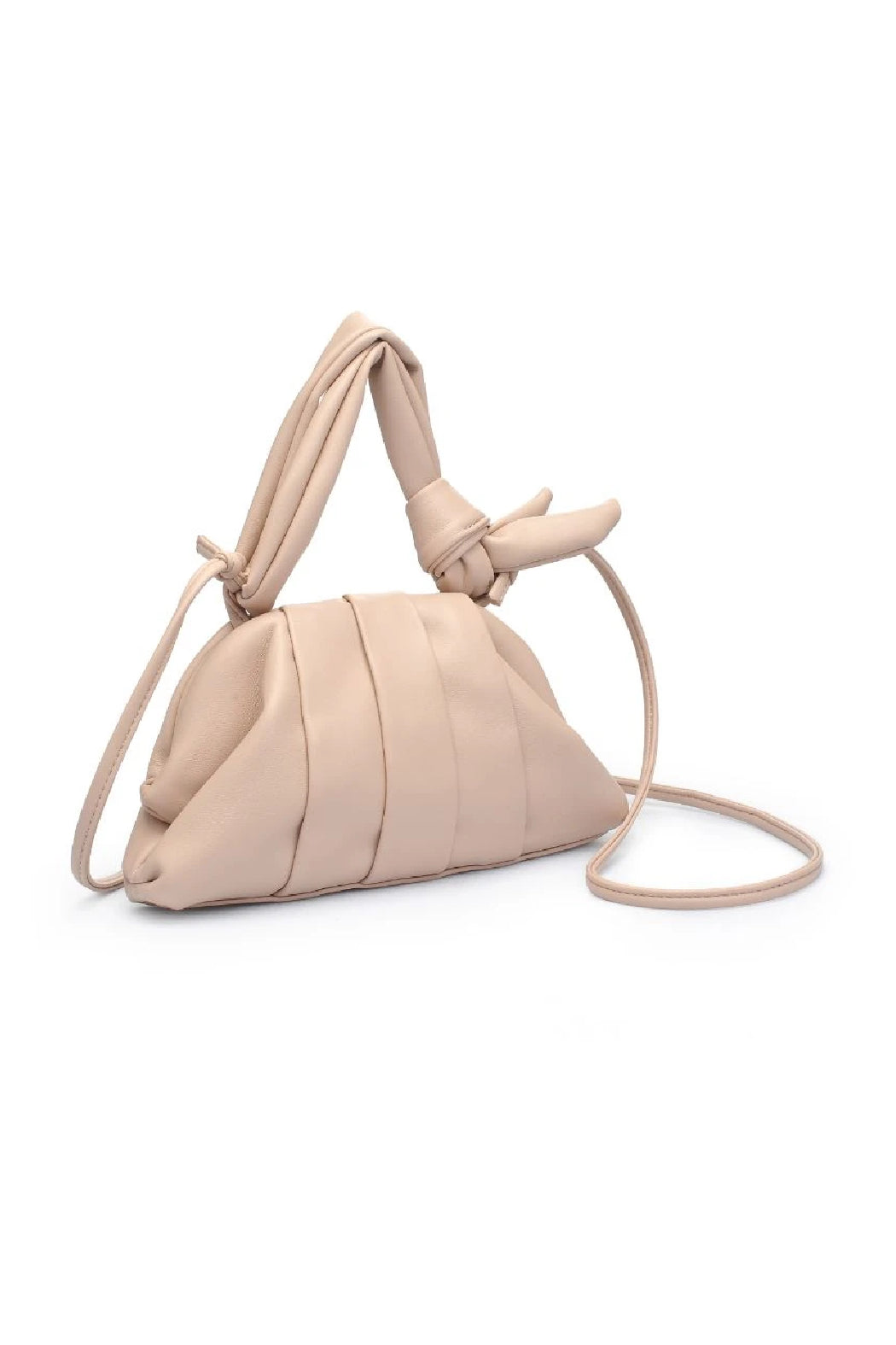 Exterior Details: Soft + slouchy shape, knotted handle detail, ruching