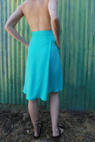 The Monroe dress is one of our most versatile fits for many different bodies as it is double adjustable. It wraps around the waist and also halter ties at the neck making it form to your body perfectly. You can make the straps more sexy by tying knots or twisting as shown in the photos. Big side seam pockets that don't add bulk. Double lined bust so you can wear it without a bra and not be too nippily. Open back that is super sexy. Can we warn with a long sleeve underneath on chillier days.