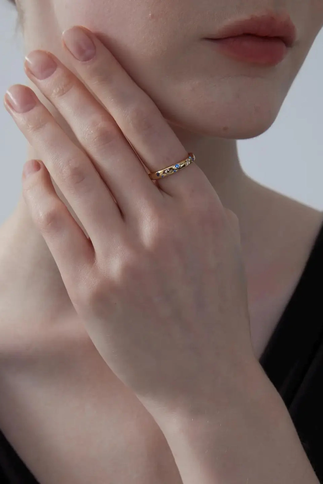 Sterling Silver & 14k plate Moon and Star Stone Stackable Ring.
