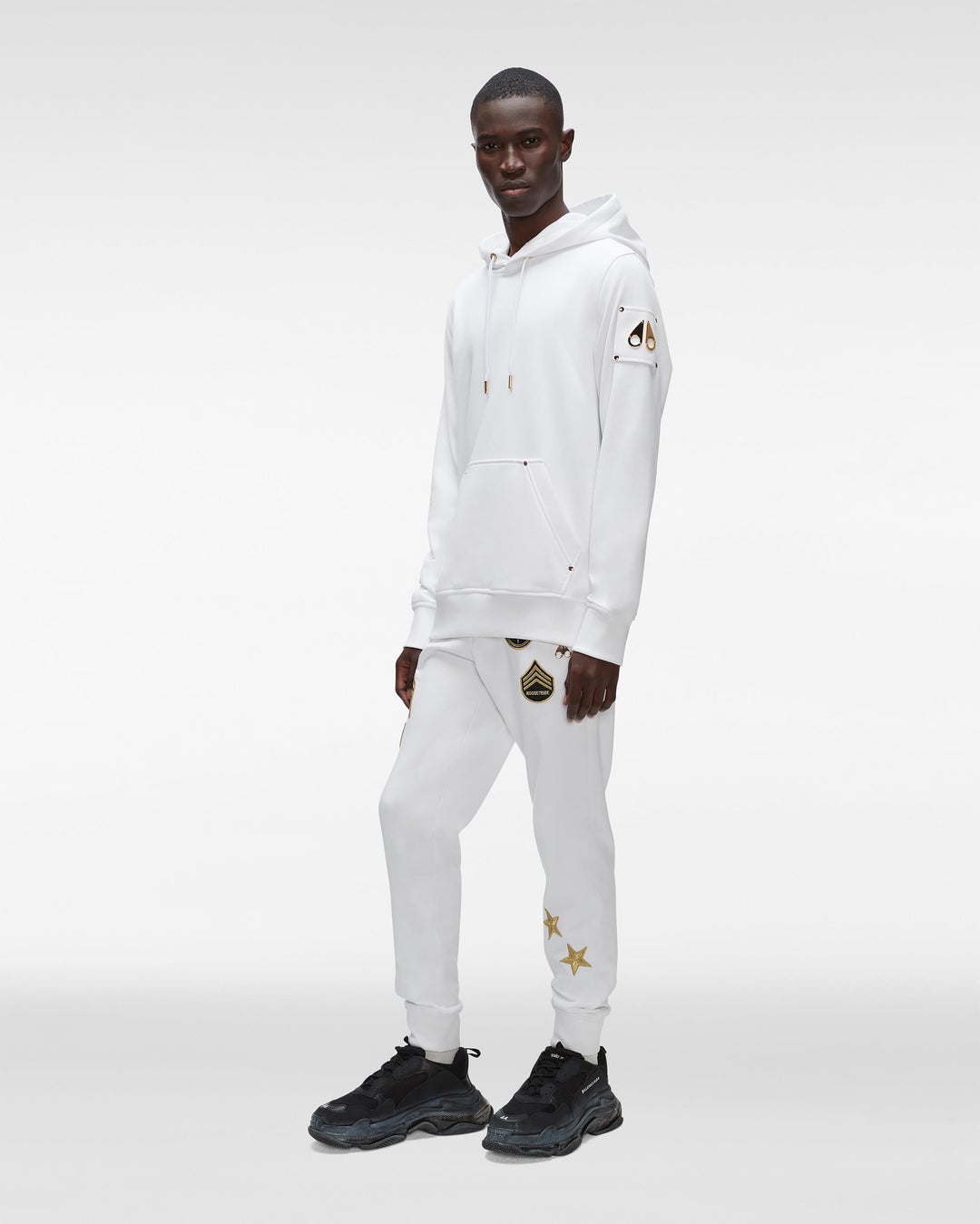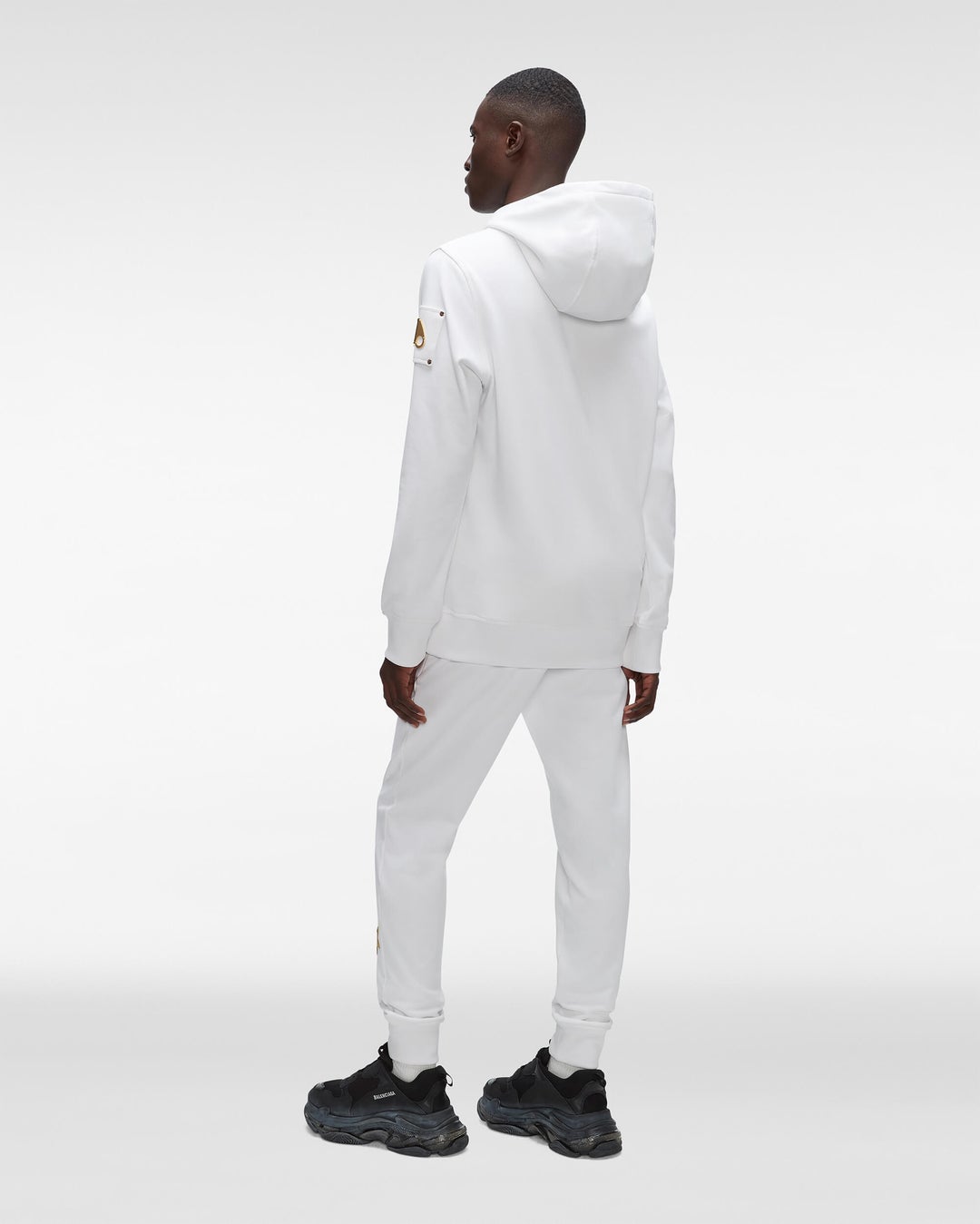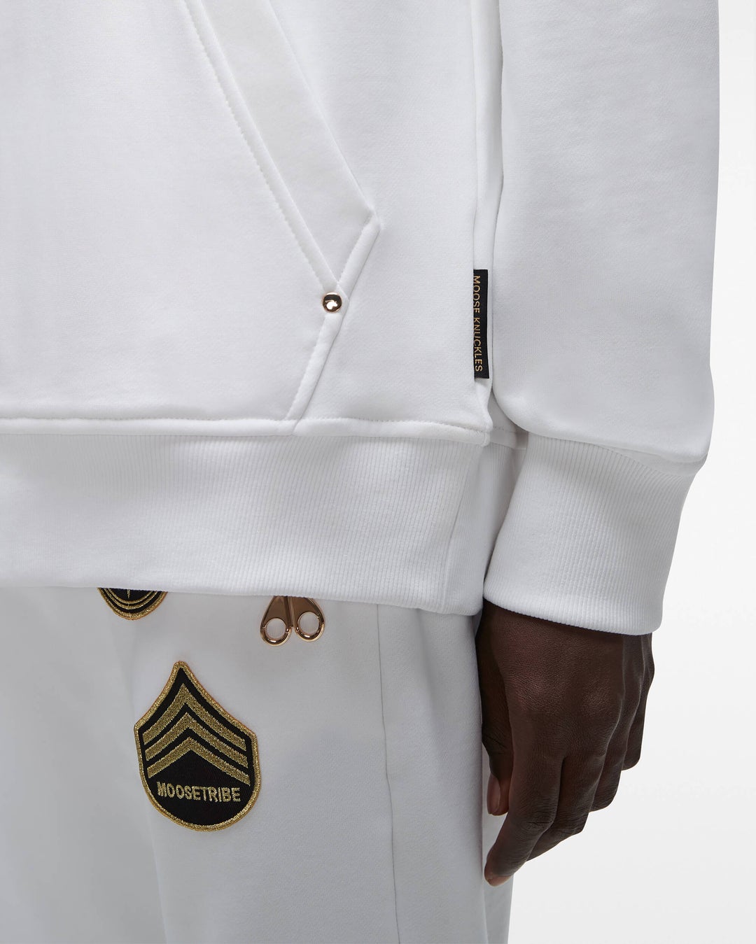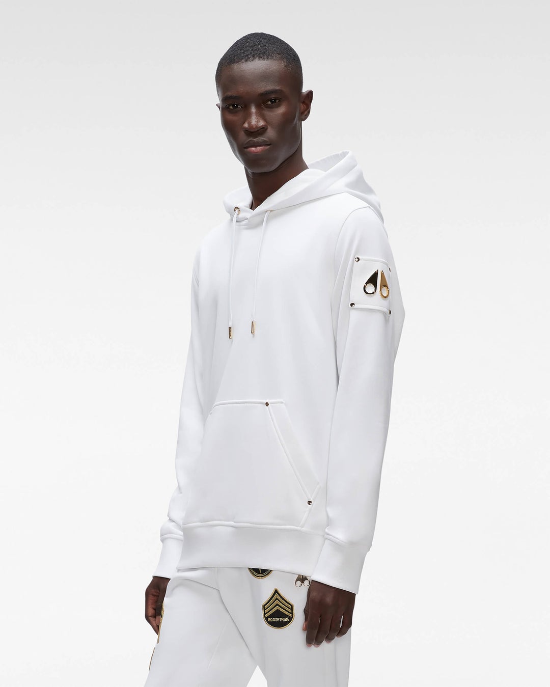 Stay cozy and stylish with the Moose Knuckles Martense Hoodie. Made of premium cotton, this ultra-soft pullover has a lined drawstring hood and kangaroo pockets. It also boasts a genuine gold-plated logo on the sleeve, adding a touch of luxury to your winter wardrobe.