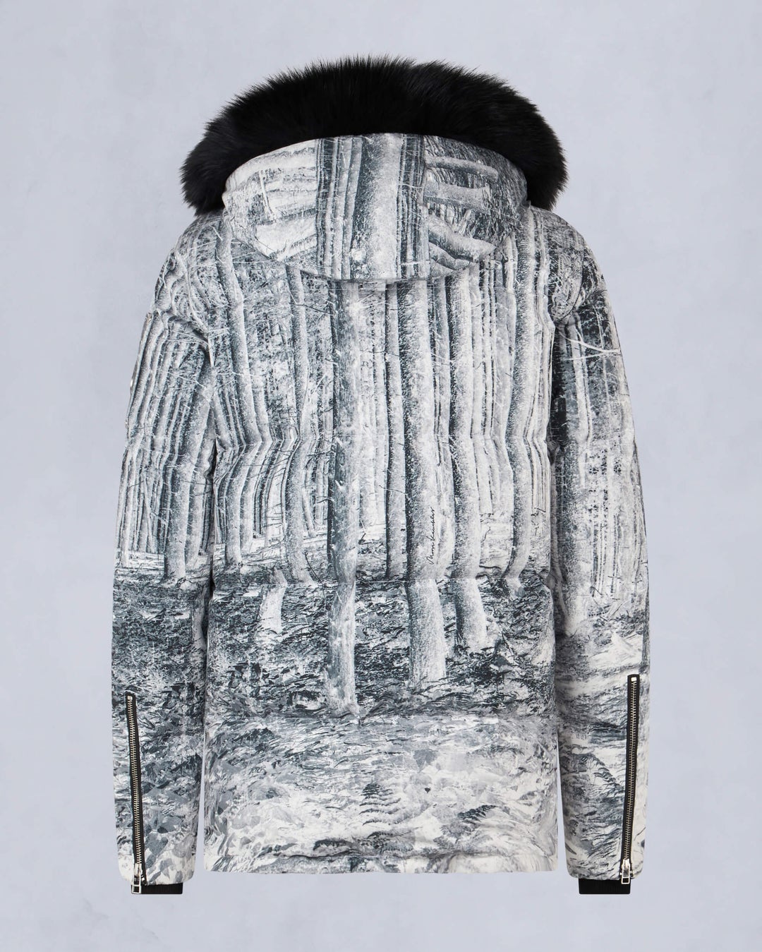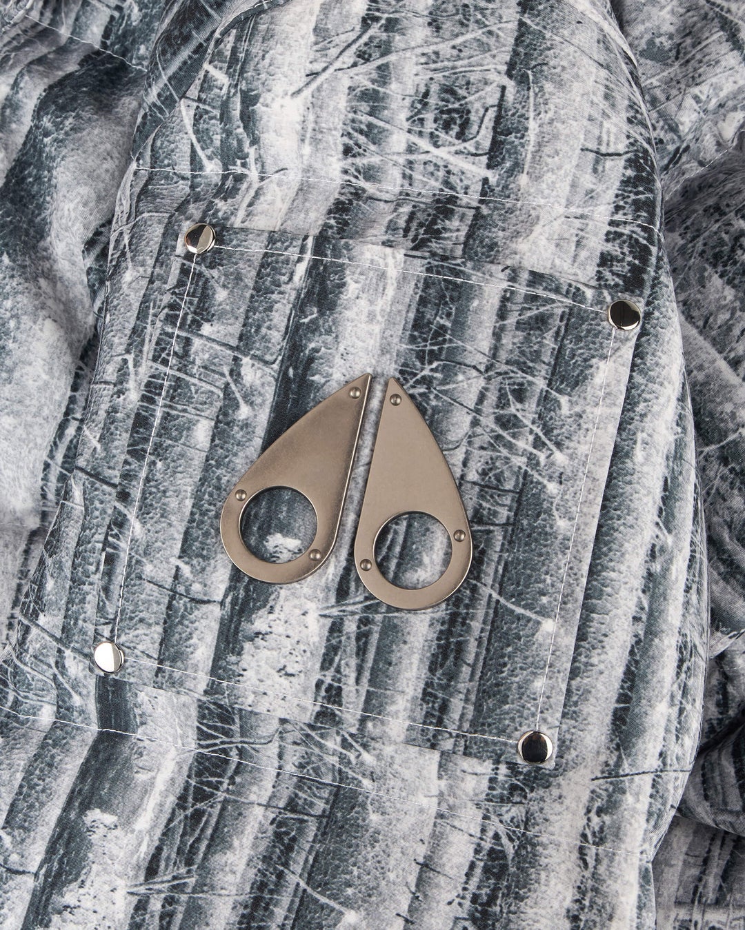 Introducing the Moose Knuckles 3Q Jacket in Forest Print with Black Shearling - the ultimate winter essential. Its DWR-treated cotton/nylon blend shell and 650-fill RDS certified down provide warmth and durability. Plus, it has a removable hood and multiple pockets for added convenience. Upgrade your winter wardrobe with this stylish and functional jacket!