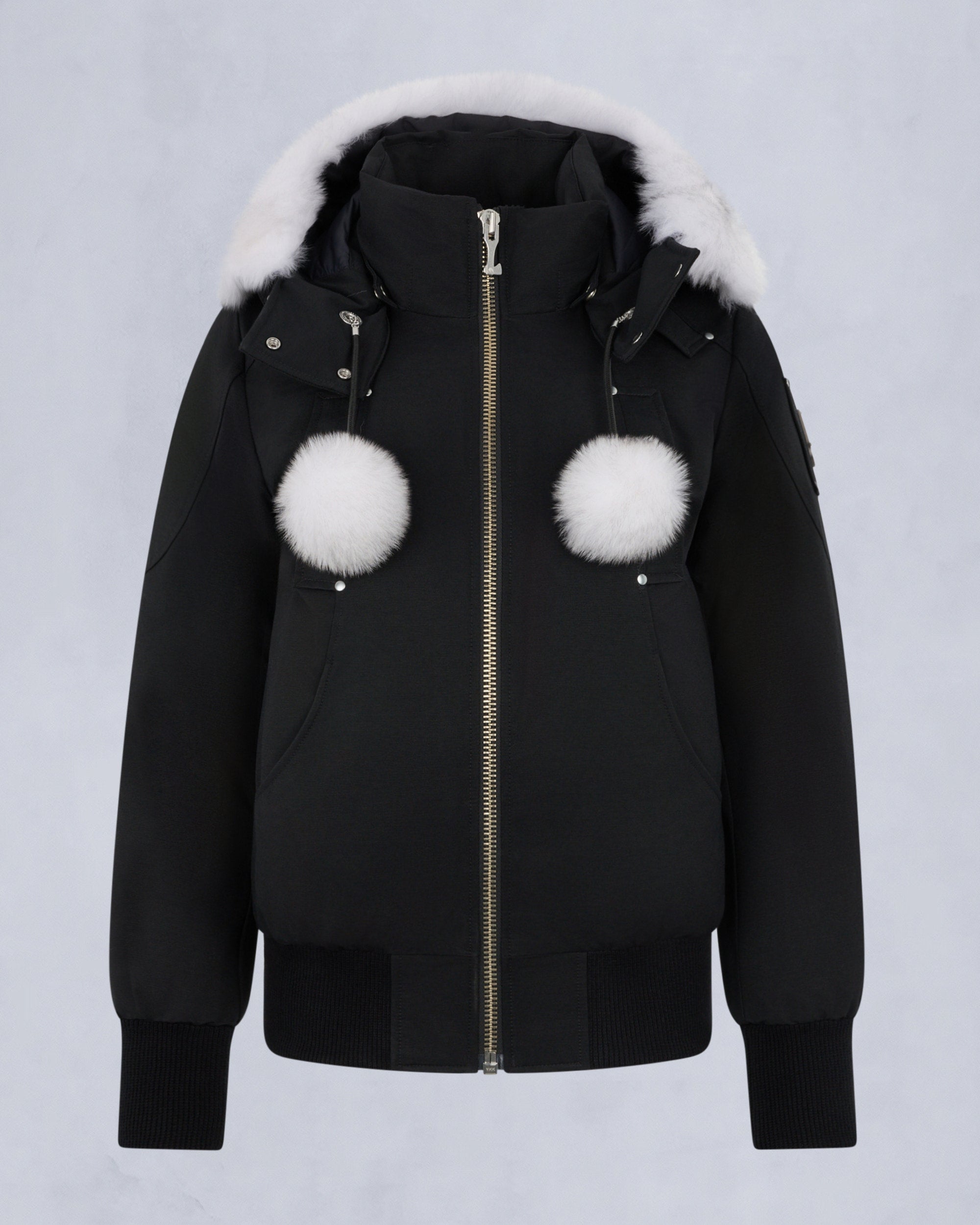 Meet the Debbie Bomber, a Moose Knuckles favorite that packs serious warmth into a sleek, city-ready shape. Designed to brave Canadian winters down to -30°C, it features a water-repellent shell, cozy 90/10 down fill, and an adjustable shearling-lined hood with adorable pom poms for flair. With a slim fit that hugs your silhouette, it’s perfect for those who love style and function—just size up if you want a little wiggle room. Made with genuine sheep shearling and crafted in Vietnam, this jacket is ready to keep you toasty and turning heads all winter long.