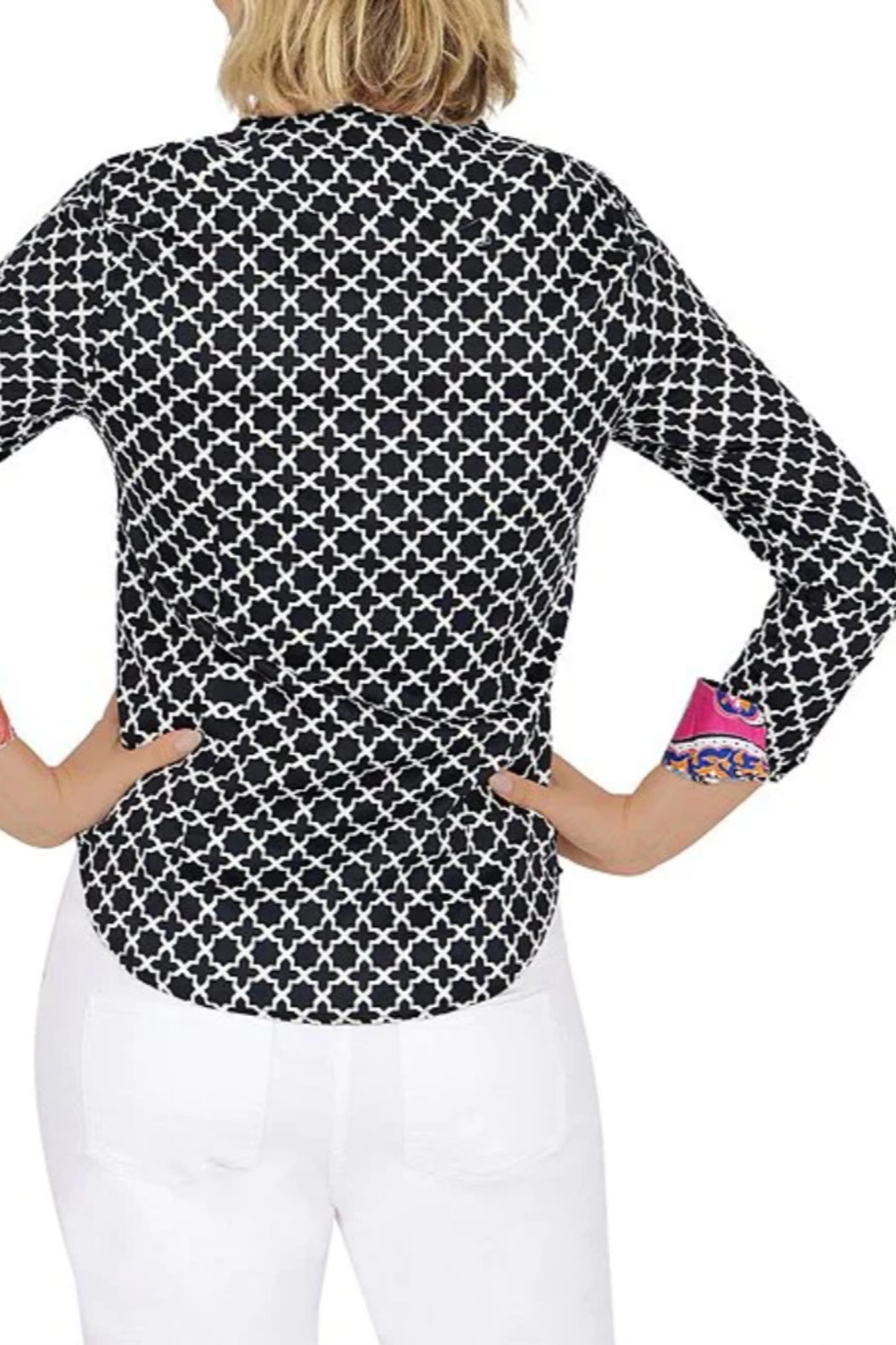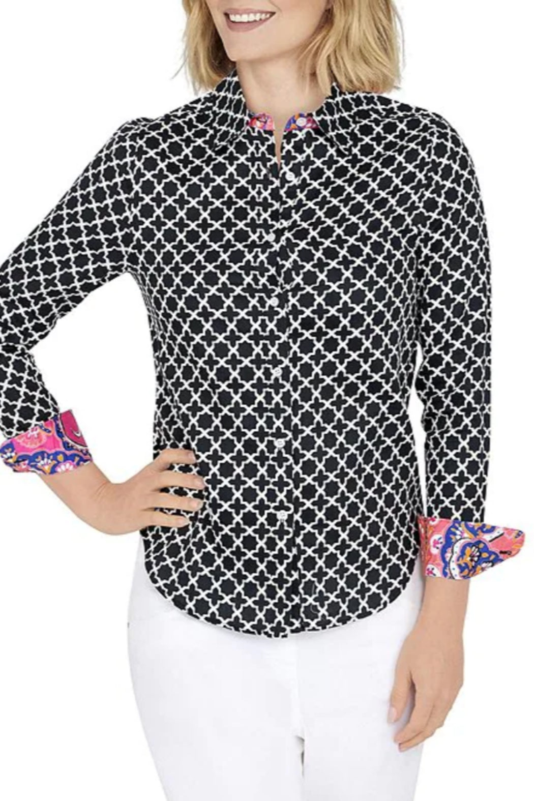 Moroccan Tile Print Button Down Collar Long Sleeve Button Front Shirt