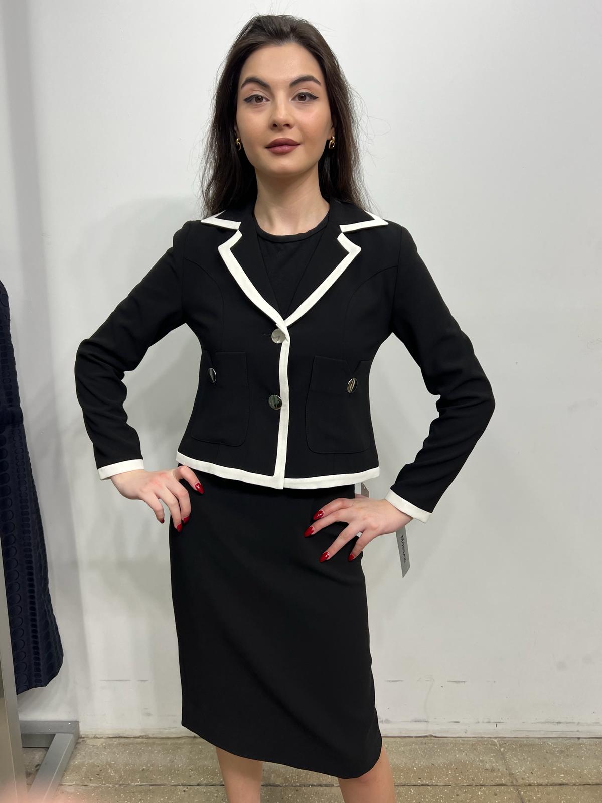 Be bold and stylish with our black and white blazer! This sleek jacket features white contrast trim and a timeless design that will elevate any outfit. Made with quality materials, it provides both comfort and fashion. Stay warm and chic in any occasion with our must-have jacket.