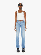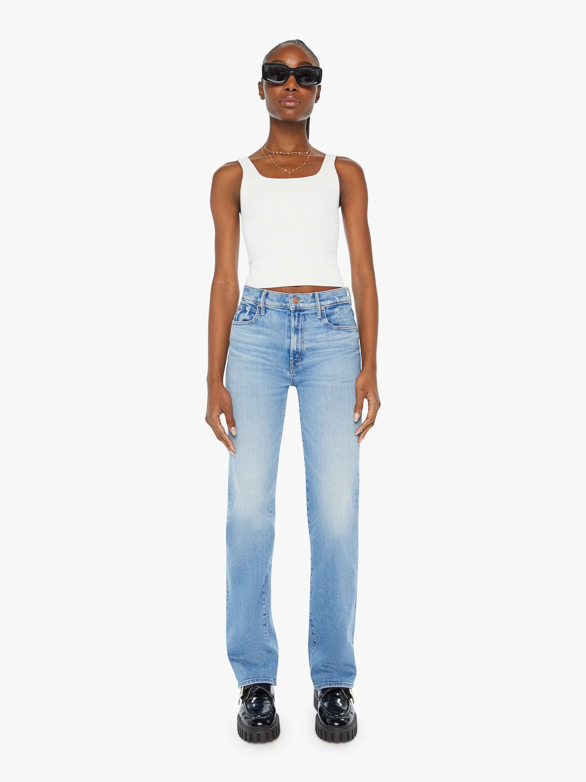 The Mother Denim Kick it Jeans are the perfect combination of style and comfort. With a high-rise fit and a 32-inch inseam, these straight leg jeans feature a clean hem and a touch of stretch for a flattering fit. The light-blue wash, Tarot Time, adds a touch of whimsy with its whiskering and fading at the knee. Shuffle, deal, and reveal your new favorite jeans!