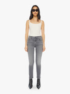 Ask MOTHER anything with these mid-rise, straight leg jeans. With a playful 28.25-inch inseam, made from stretch denim in a grey wash with whiskering, fading, and black hardware - these jeans are certain to become your new favorite!