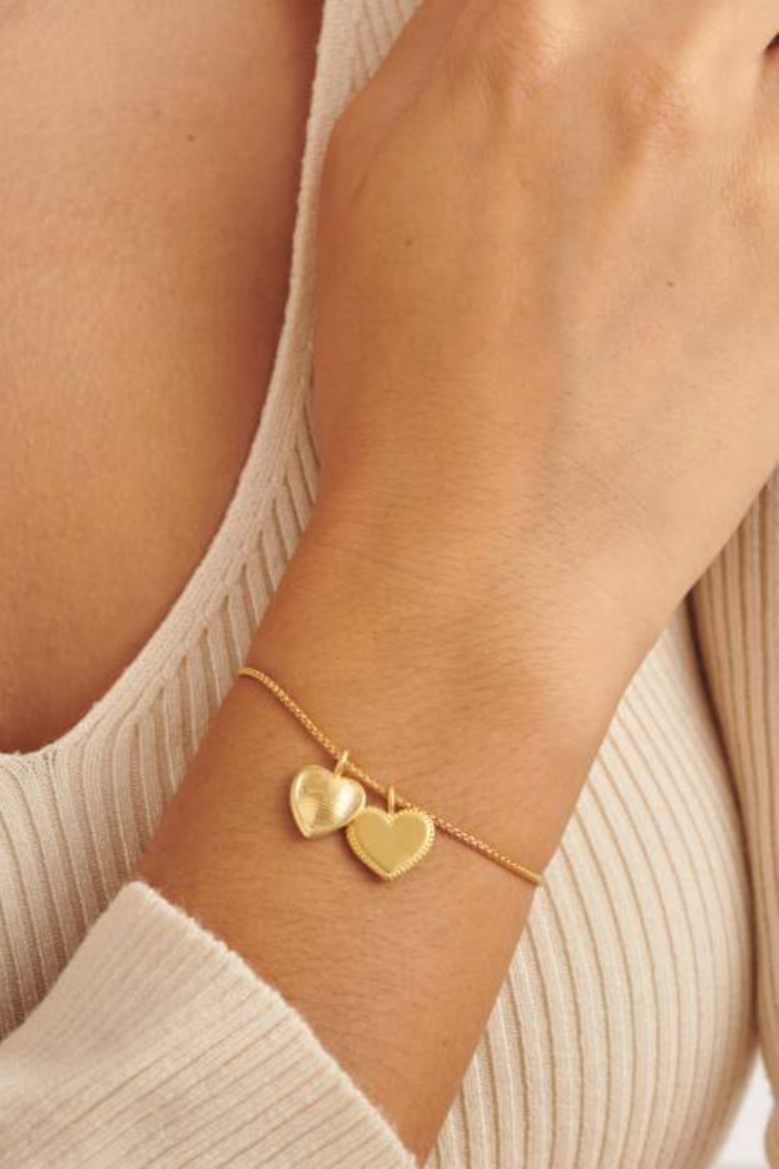 Certified waterproof our Mother's Day Waterproof Gold Charm Bracelet makes the ultimate gift for every mom mom-to-be and mother-figure in your life. Made from durable 18K Gold PVD Coating and featuring two complementing heart charms.