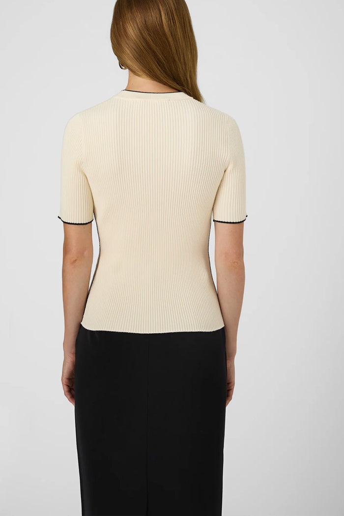 The Mozza Short Sleeve Sweater is an essential separate for all-seasons styling. A flattering slim fit, short sleeve, rib knit, and contrasting hems creates a timeless wardrobe appeal. -Rib knit sweater -Fabric: soft, light, cotton -Short sleeves -Round neckline -Contrast hem -Slim fit -Our model is 5ft11" and is wearing a US size S