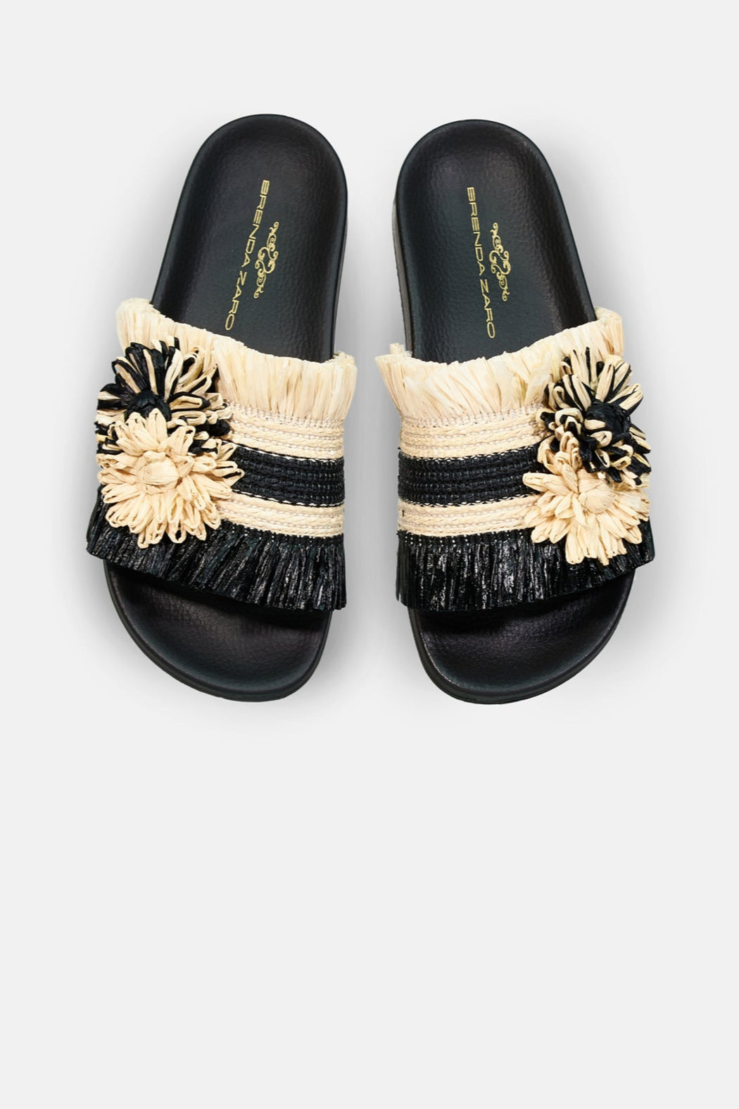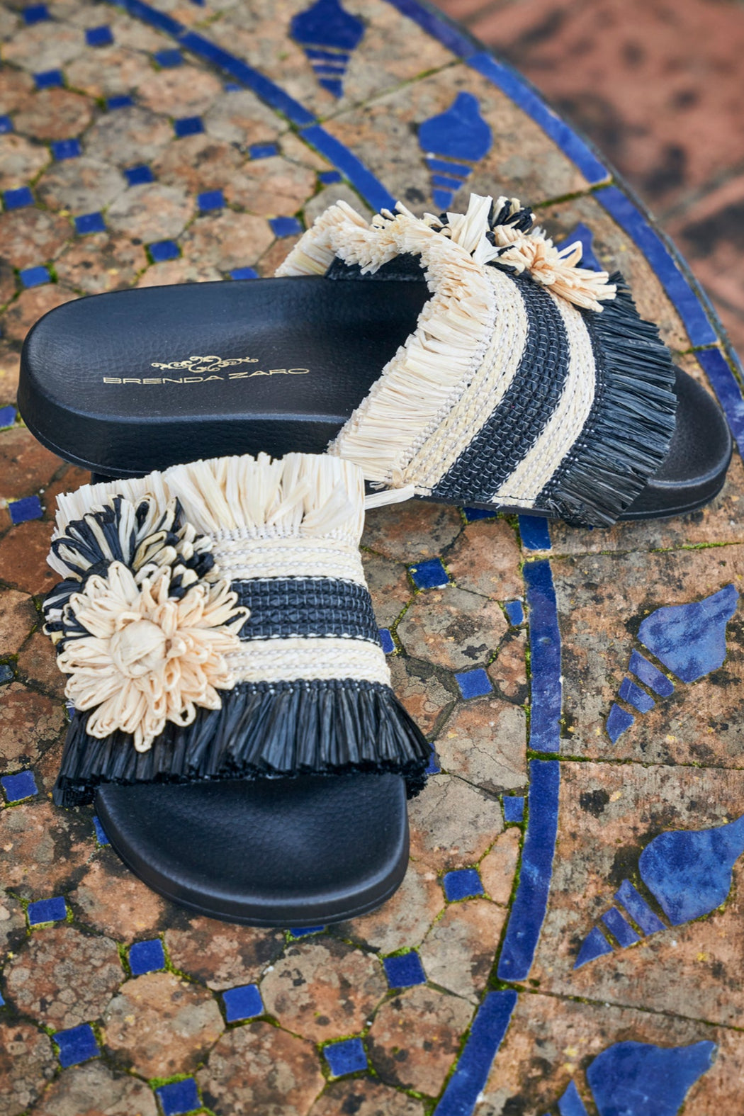This season the “Slide” type sandals are on trend and at Brenda Zaro we want to follow trends, that’s why we want to present you our MIGJORN B&N sandal. A flat raffia sandal composed of a black rubber sole with a decoration that covers the entire upper made of vanilla and black raffia lattice, in this one, the ornaments in the same material forming flowers stand out.
