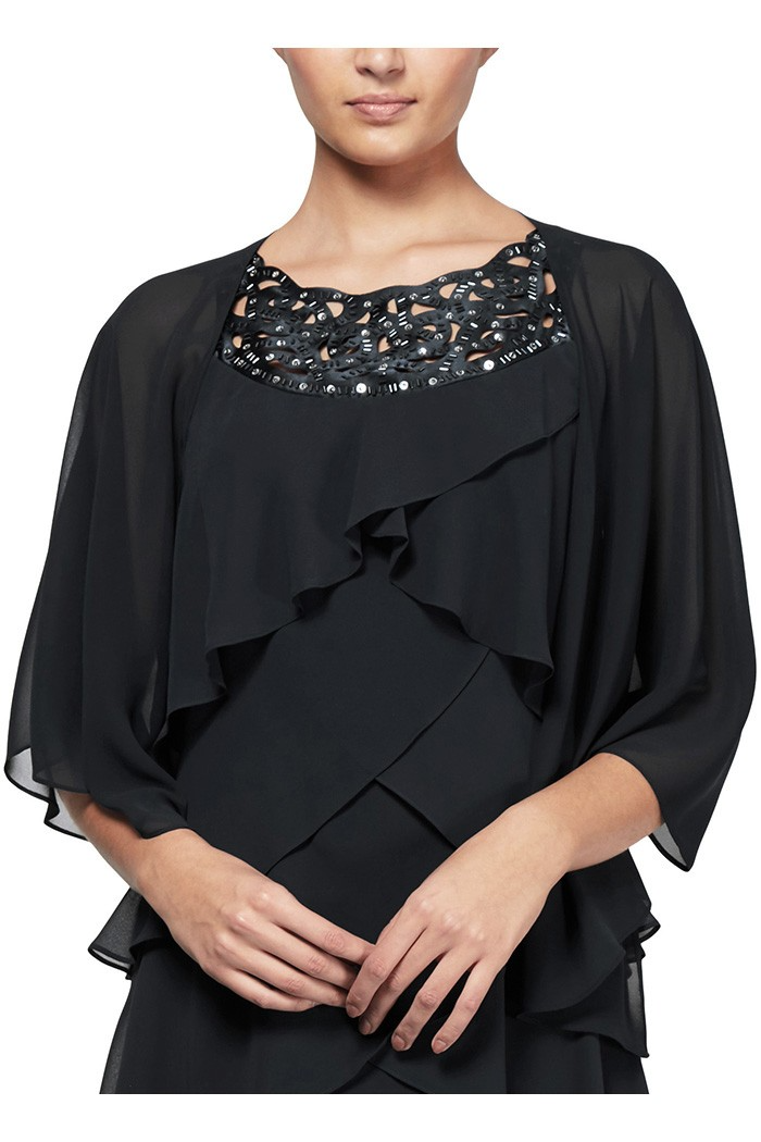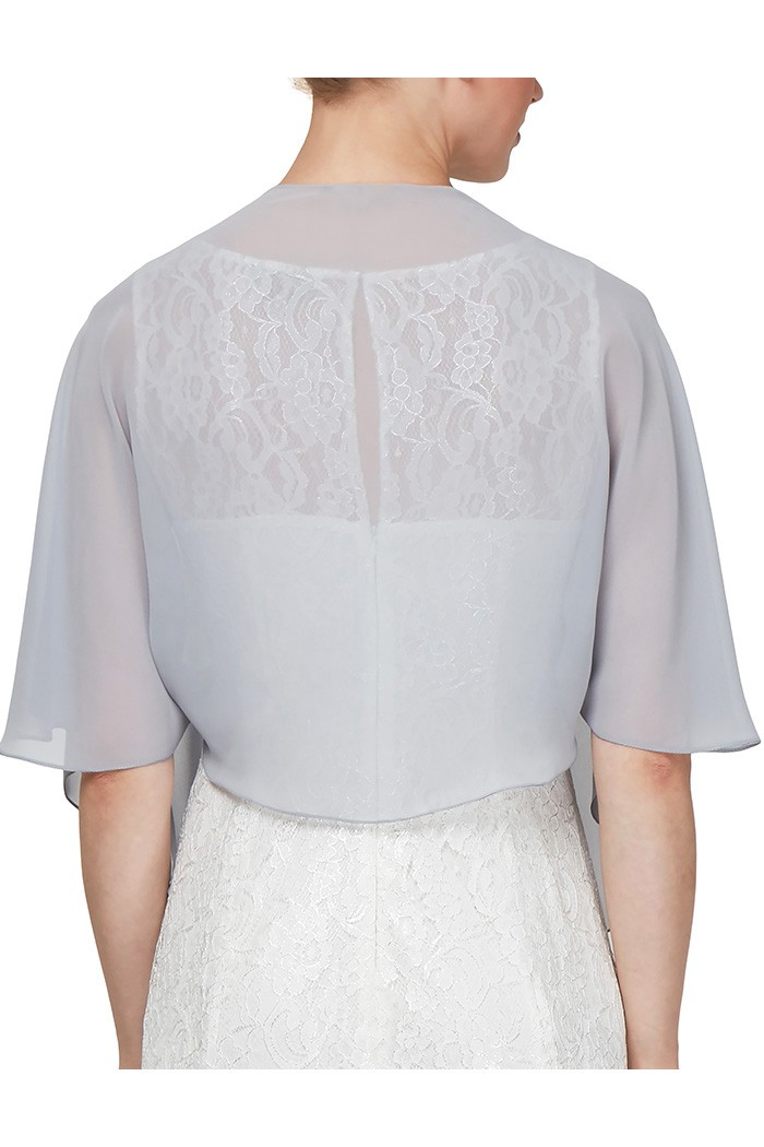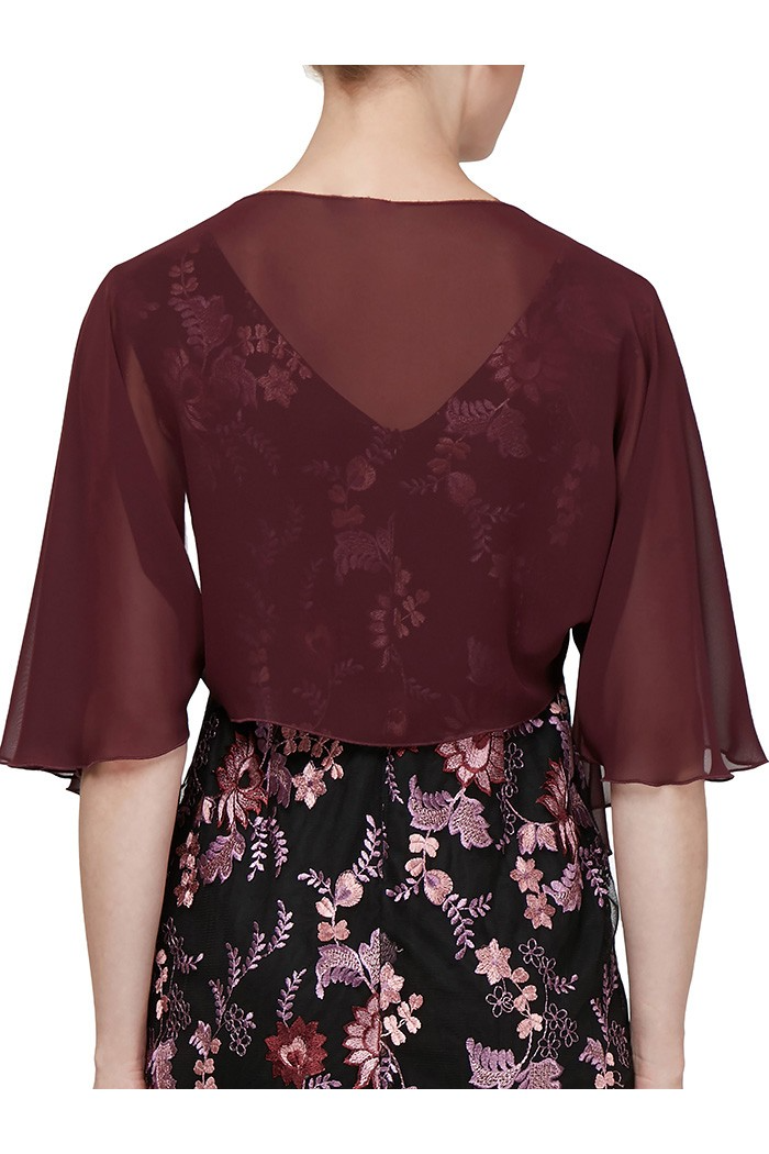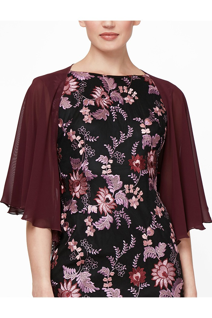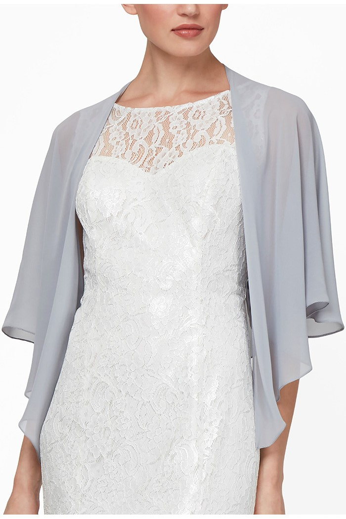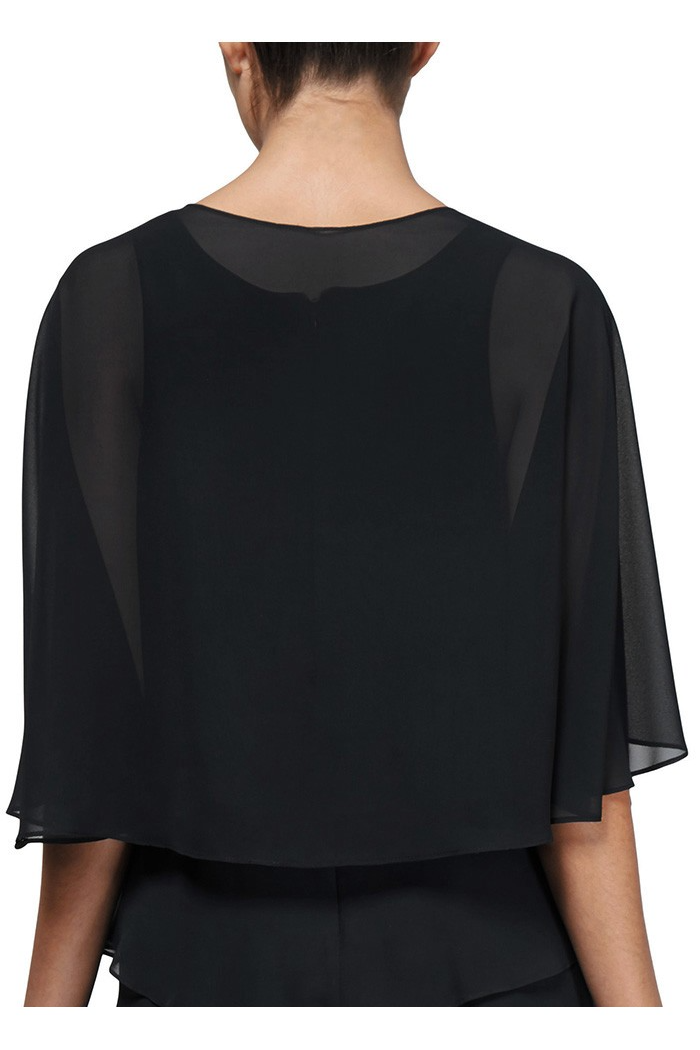 This is a gorgeous multi wear shawl that can be worn with anything in your closet! It has buttons and loops under the arms that can be hooked together to make sleeves, you can also wear it unbuttoned as a normal shawl, as well as buttoned in the front for more coverage if wanted. It is a nice chiffon fabric that is lightweight.