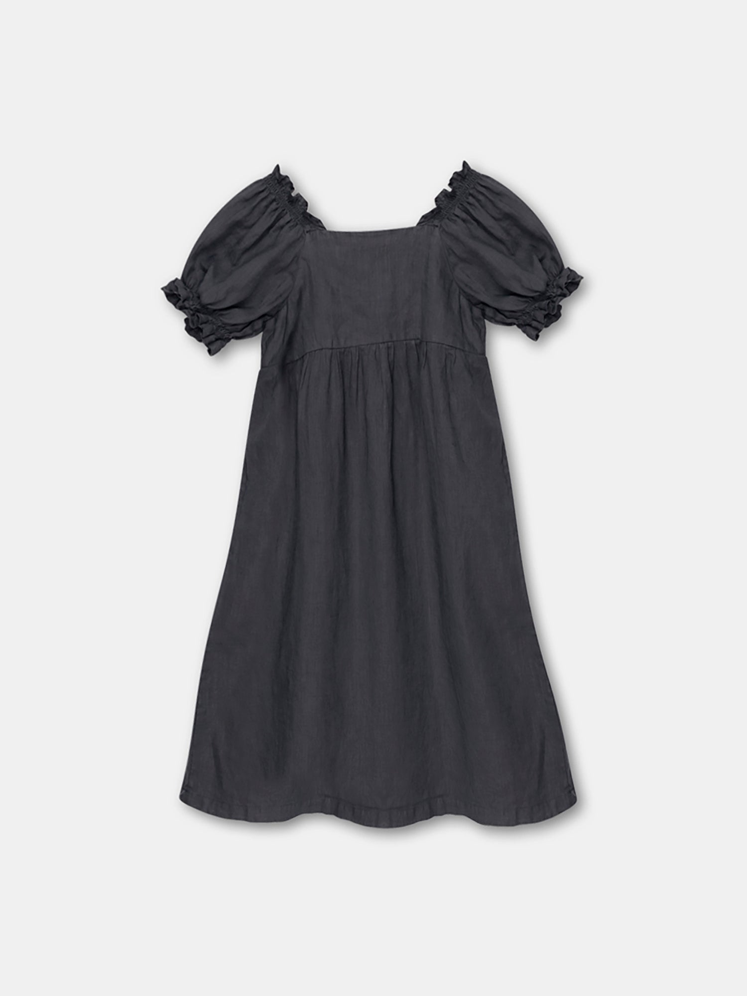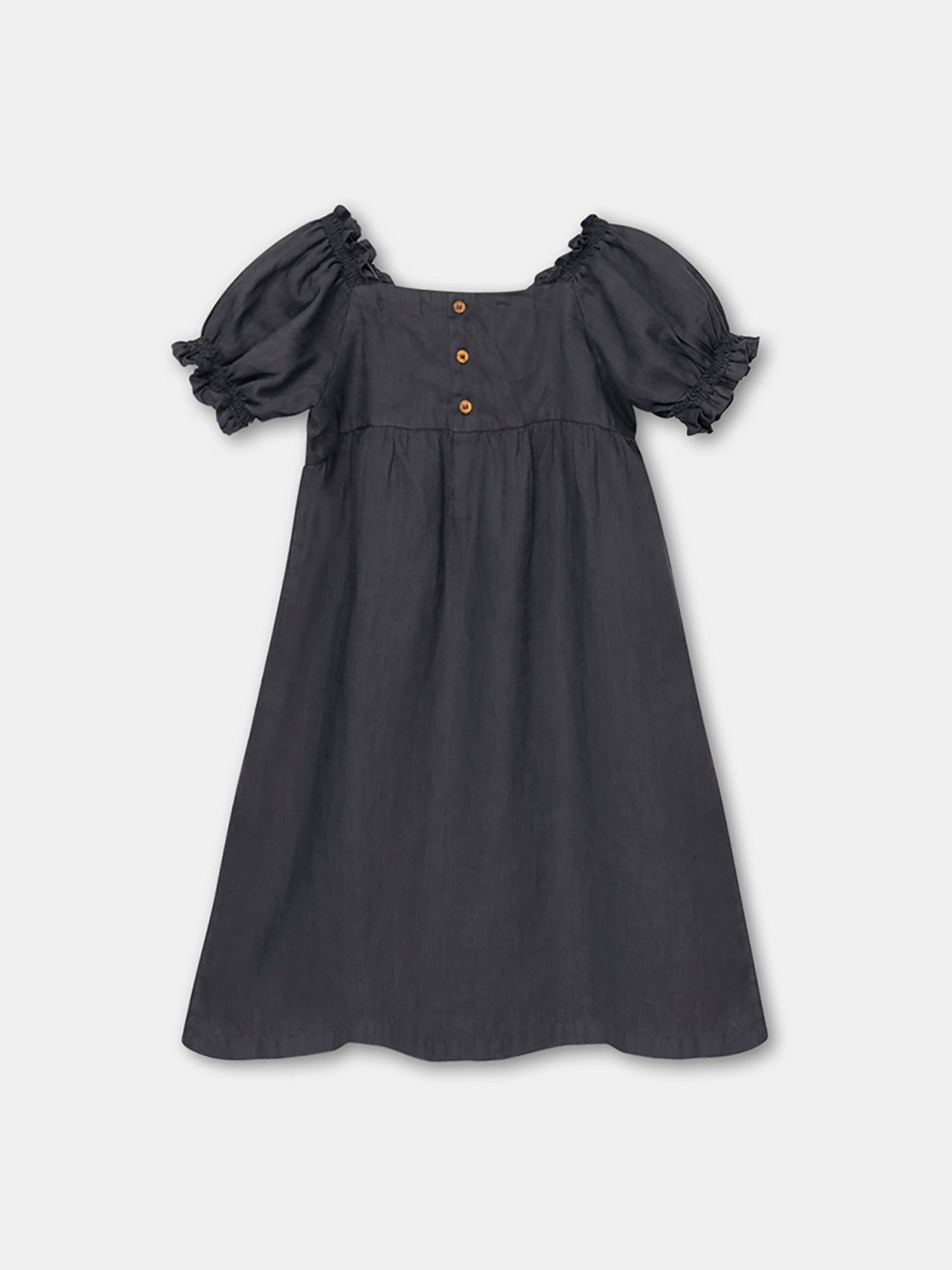 •LOOK: This beautiful dress in a summer linen will keep her stylish and cool even when the temperature continues to rise. New from My Little Cozmo is an a-line shaped dress with a square neckline, 3-button closure in back and short sleeves with a trendy balloon effect. Simple style with an age appropriate elegance.