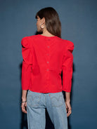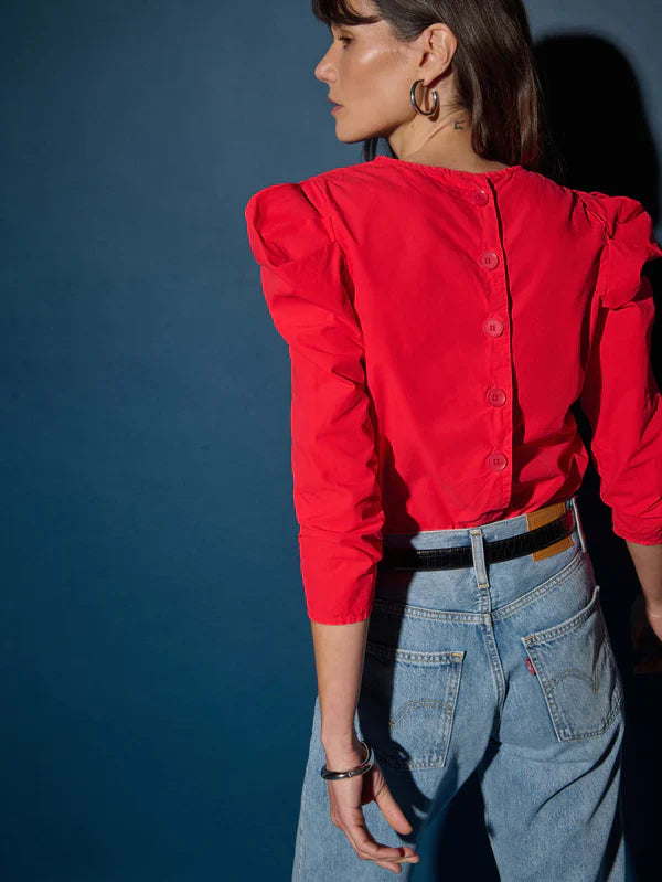 Details: Bra friendly, Functional buttons, Pleated detail, Puff shoulder