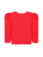 Be the center of attention (without even trying). This blouse features bold puff sleeves with knife pleat details and a functional button back closure.