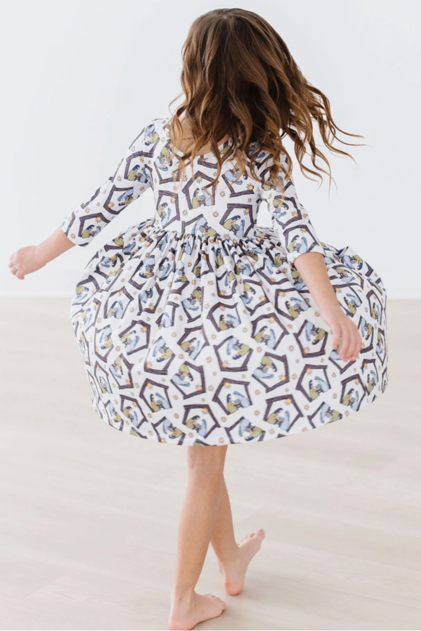 Scoop back and ballet neckline make getting dressed a breeze. Full skirt makes twirling extra fun.
